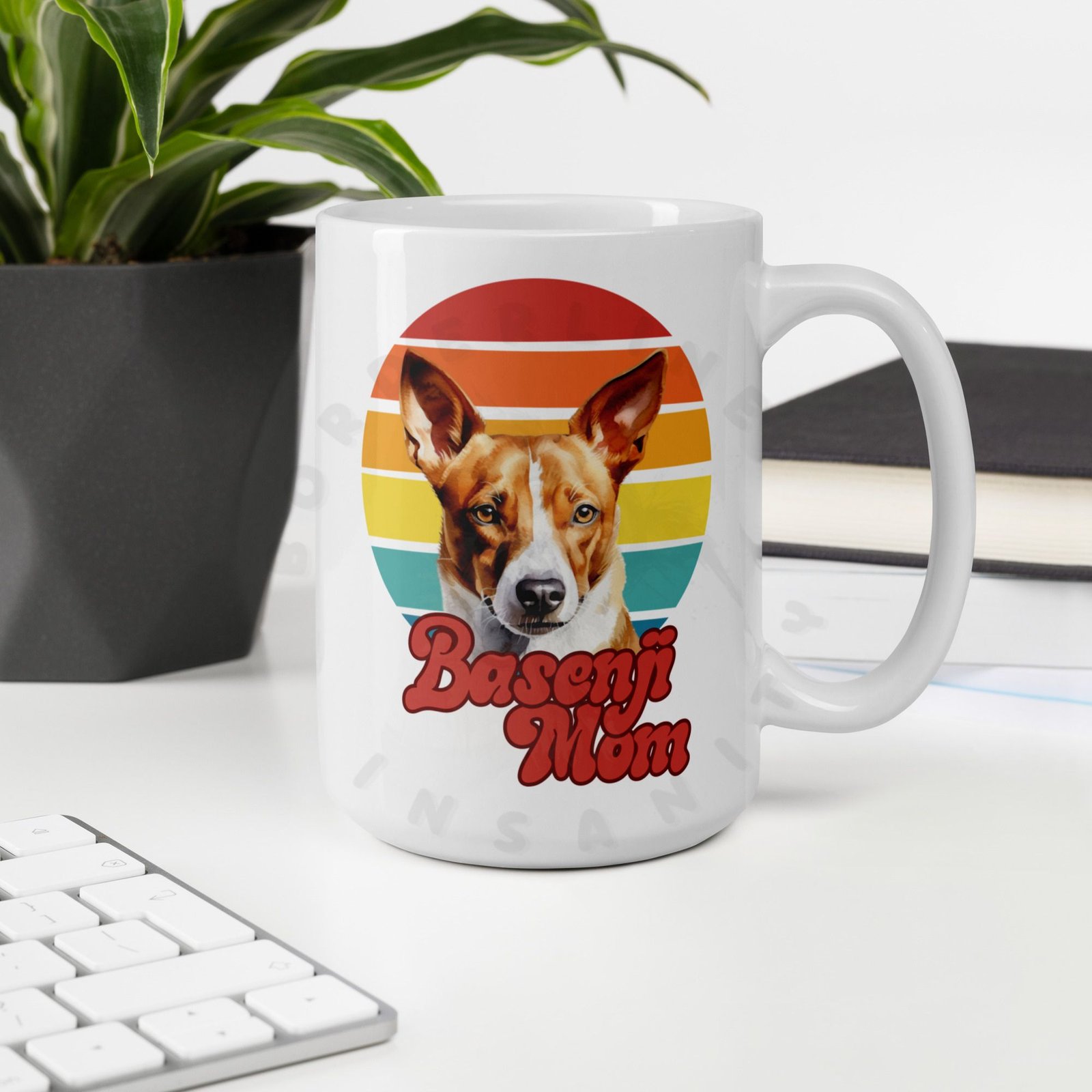 Because your morning coffee deserves a mug that truly understands you. This retro sunset Basenji Mom mug is designed for the dog mom who considers her Basenji a member of the family — because obviously they are.