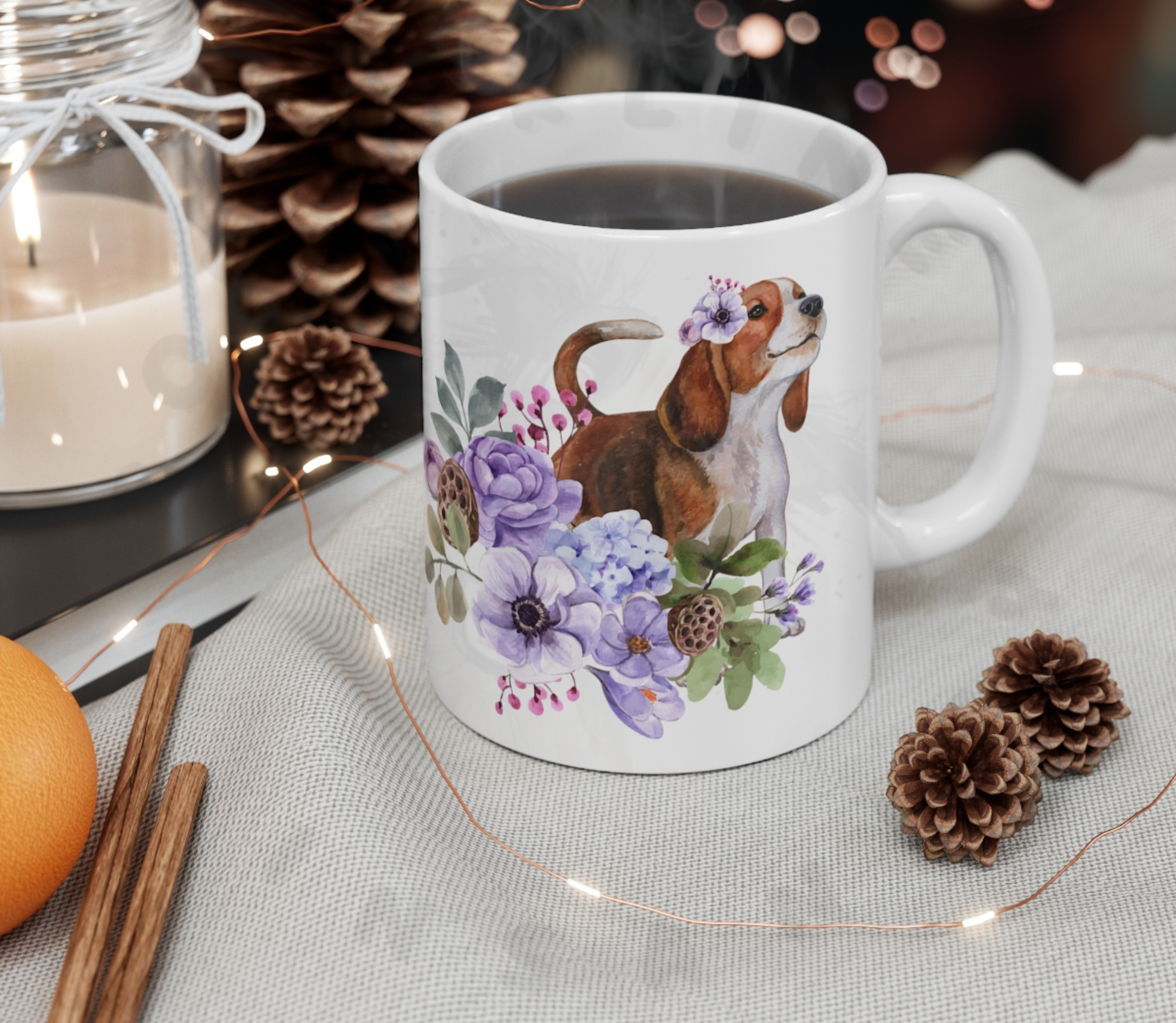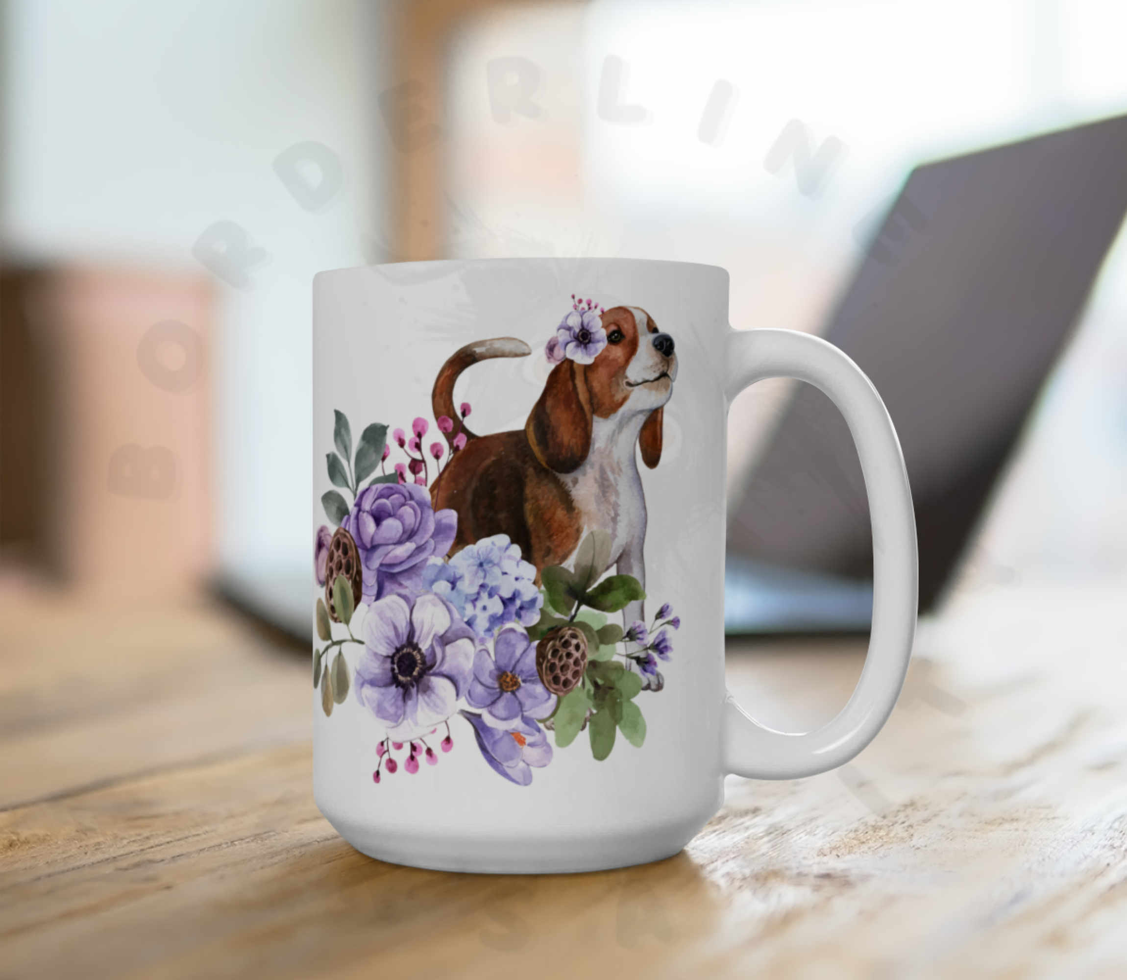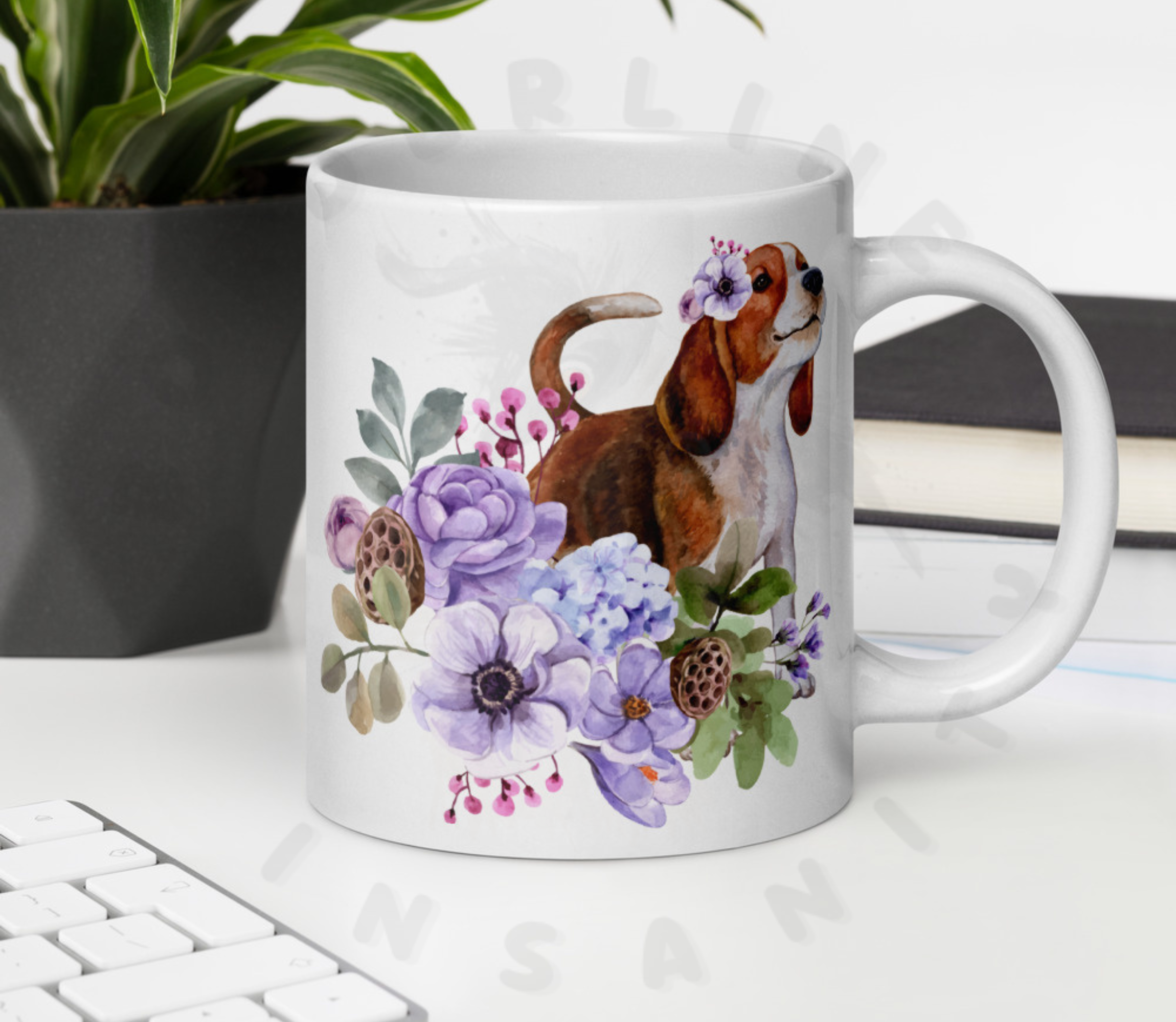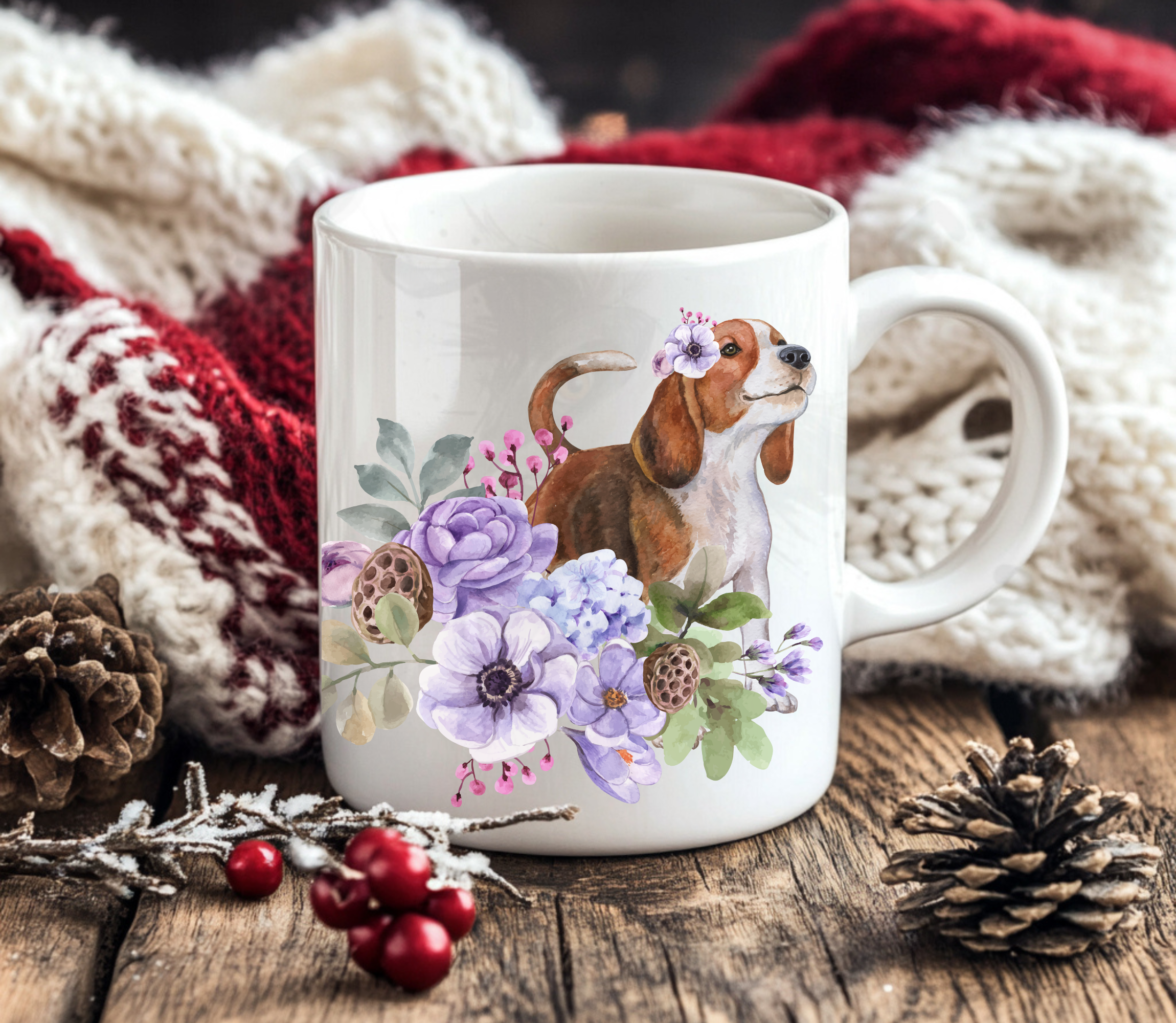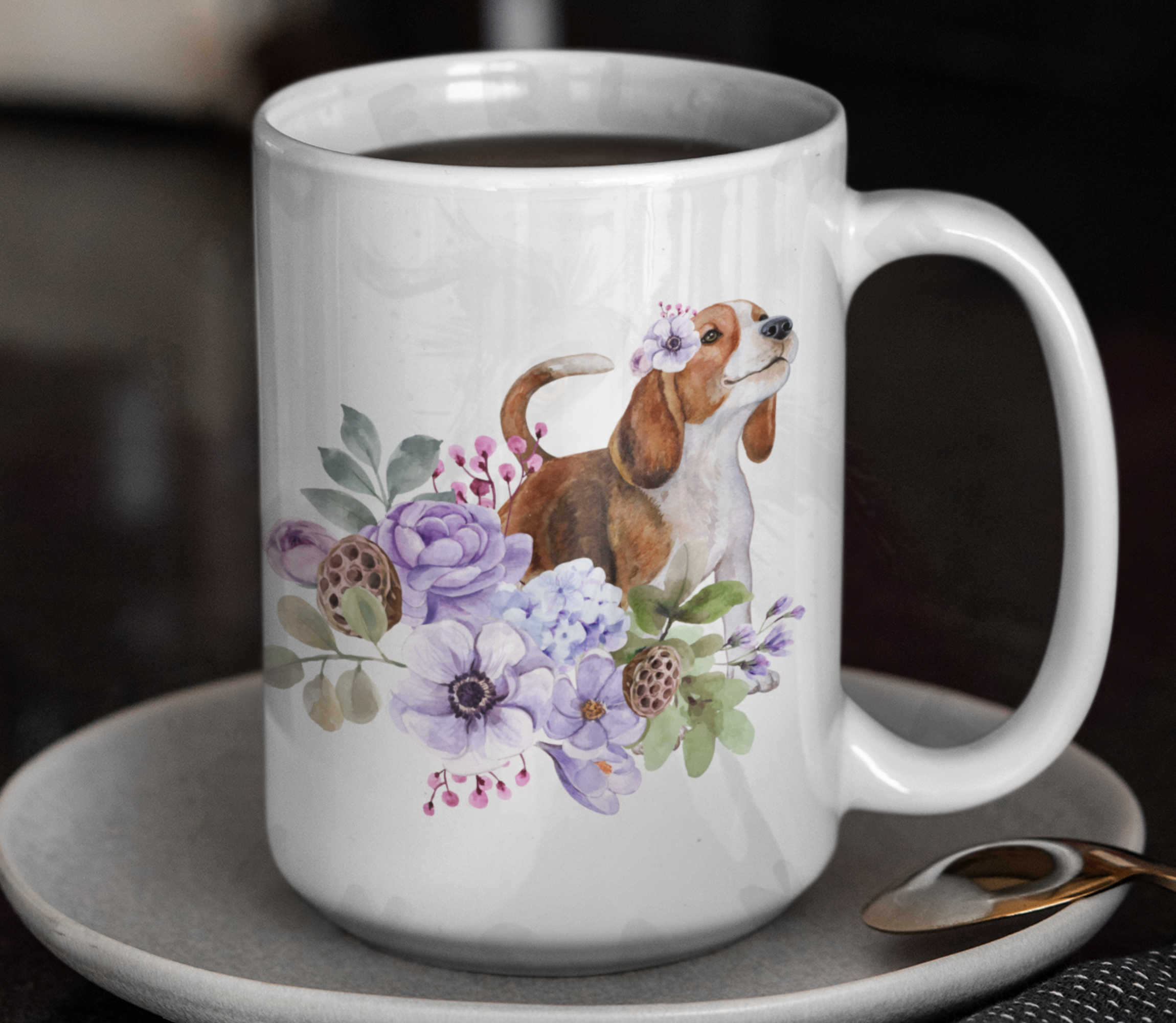 Brighten your morning coffee with our enchanting Beagle floral mug!