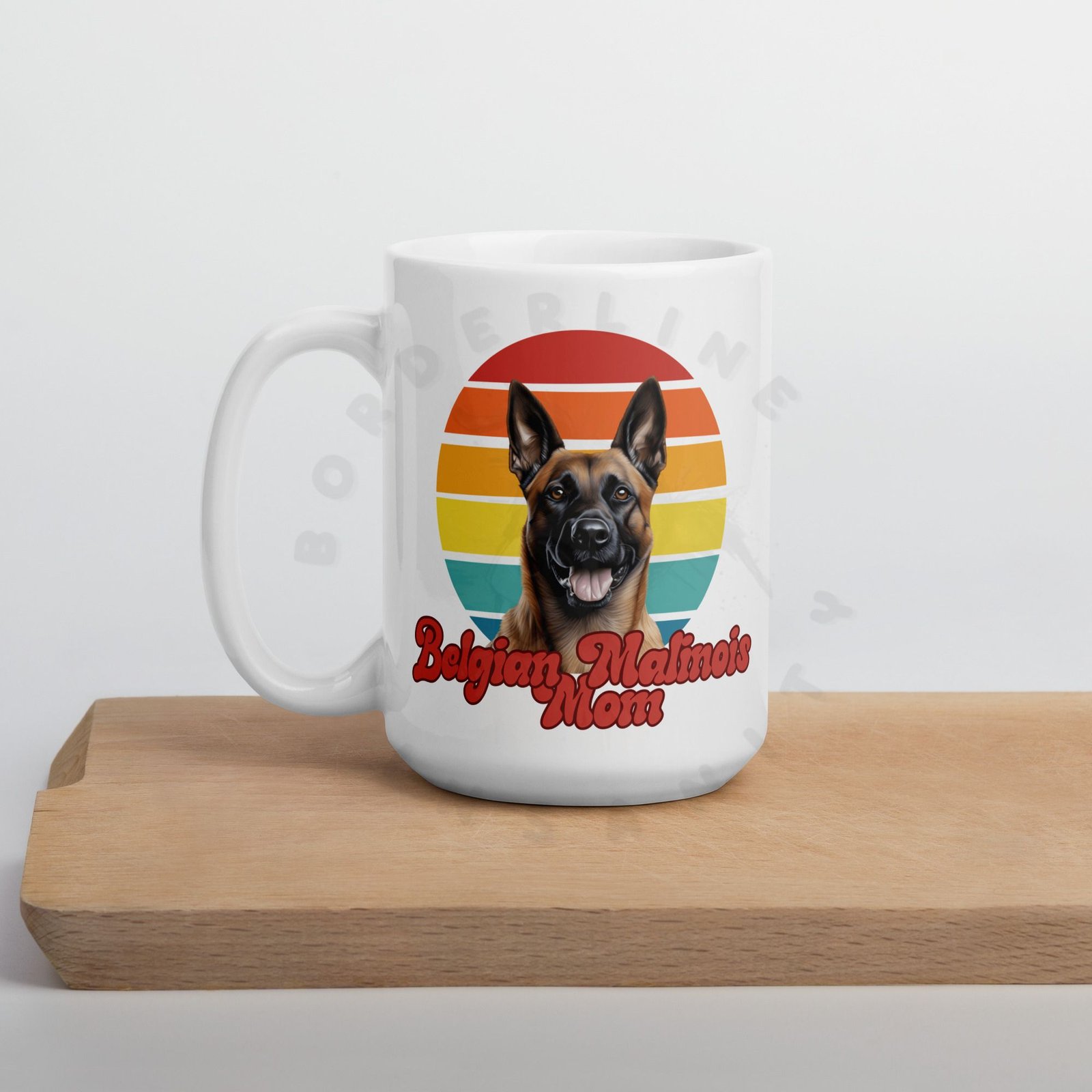 Featuring a stunning watercolor Belgian Malinois portrait set against a warm vintage sunset circle, this mug is equal parts art and attitude. The bold retro script says what every Belgian Malinois mom already knows: this is not just a dog, this is a lifestyle.