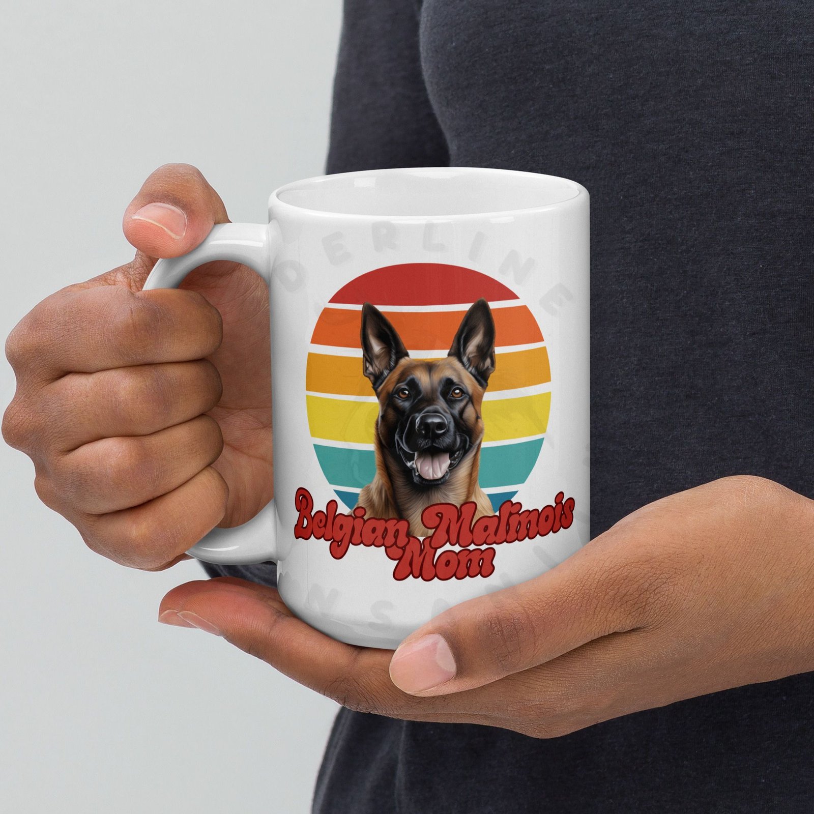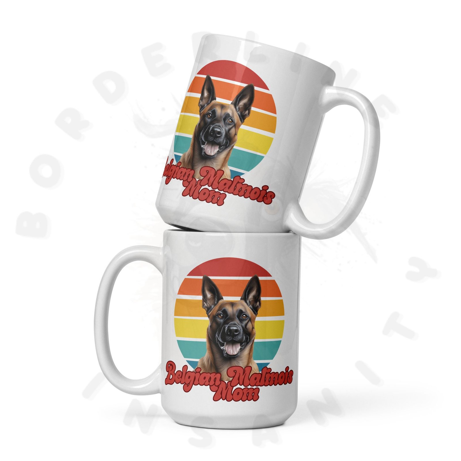 Show off your love for your Belgian Malinois every morning! This retro-inspired 15oz ceramic mug features a gorgeous watercolor Belgian Malinois portrait set against a warm sunset circle — bold, beautiful, and made for dog moms who wear their heart on their sleeve (and their mug on their desk).