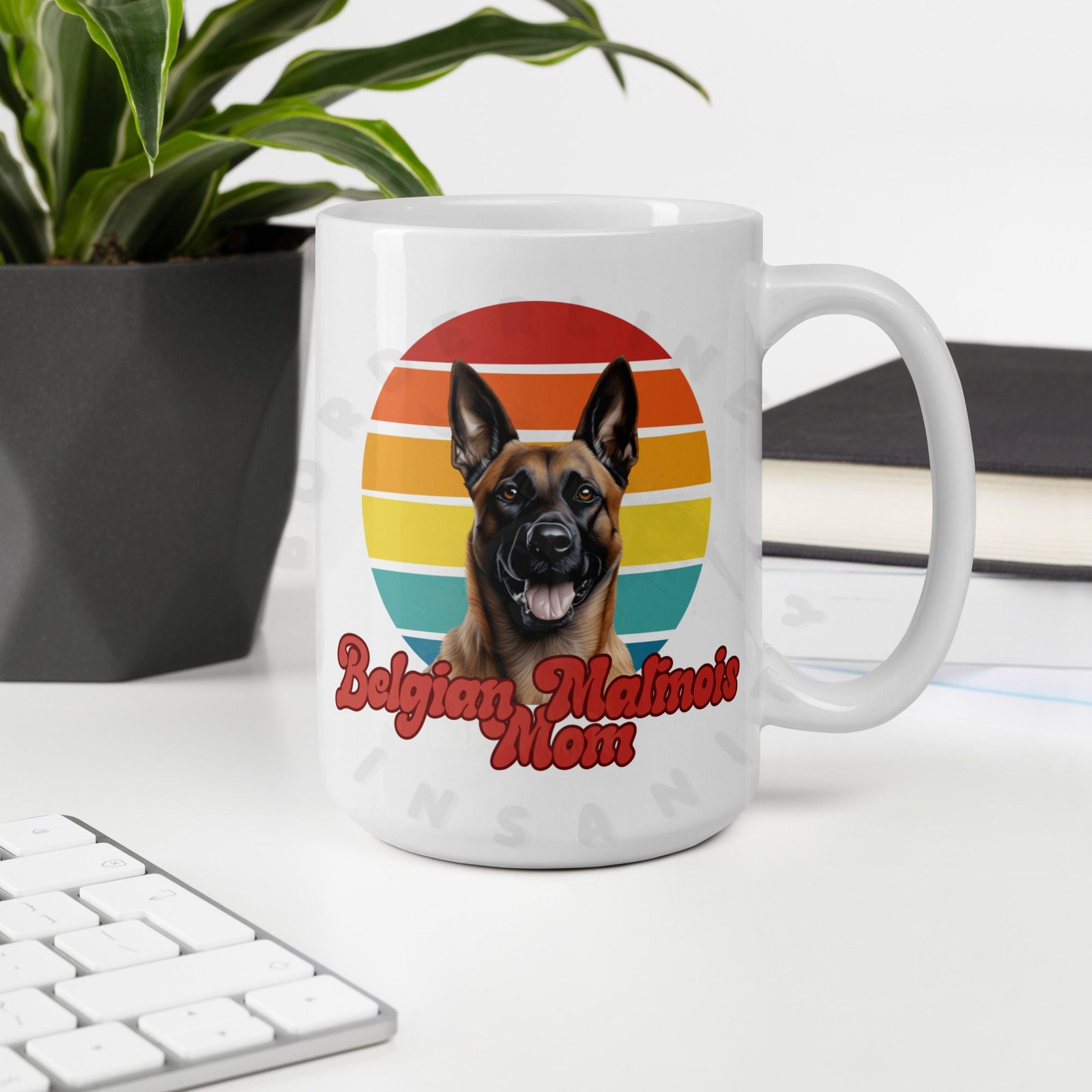 Because your morning coffee deserves a mug that truly understands you. This retro sunset Belgian Malinois Mom mug is designed for the dog mom who considers her Belgian Malinois a member of the family — because obviously they are.