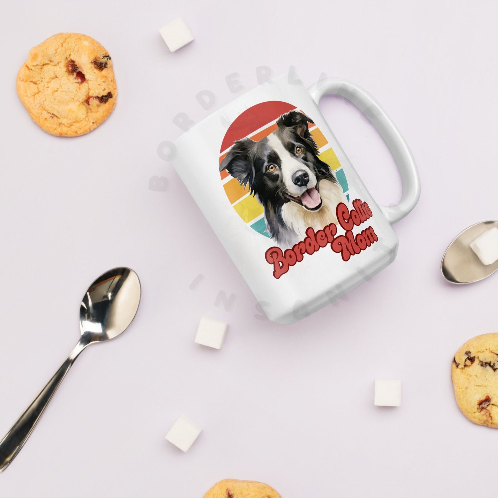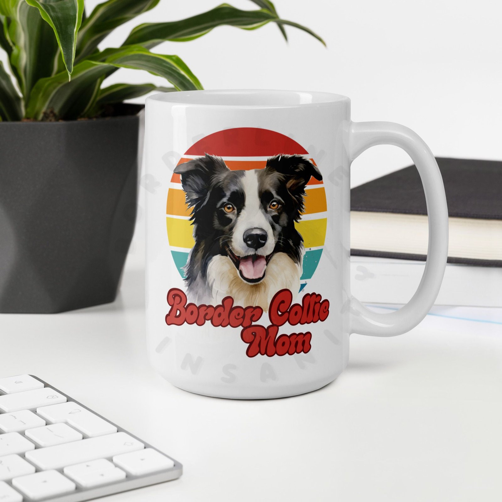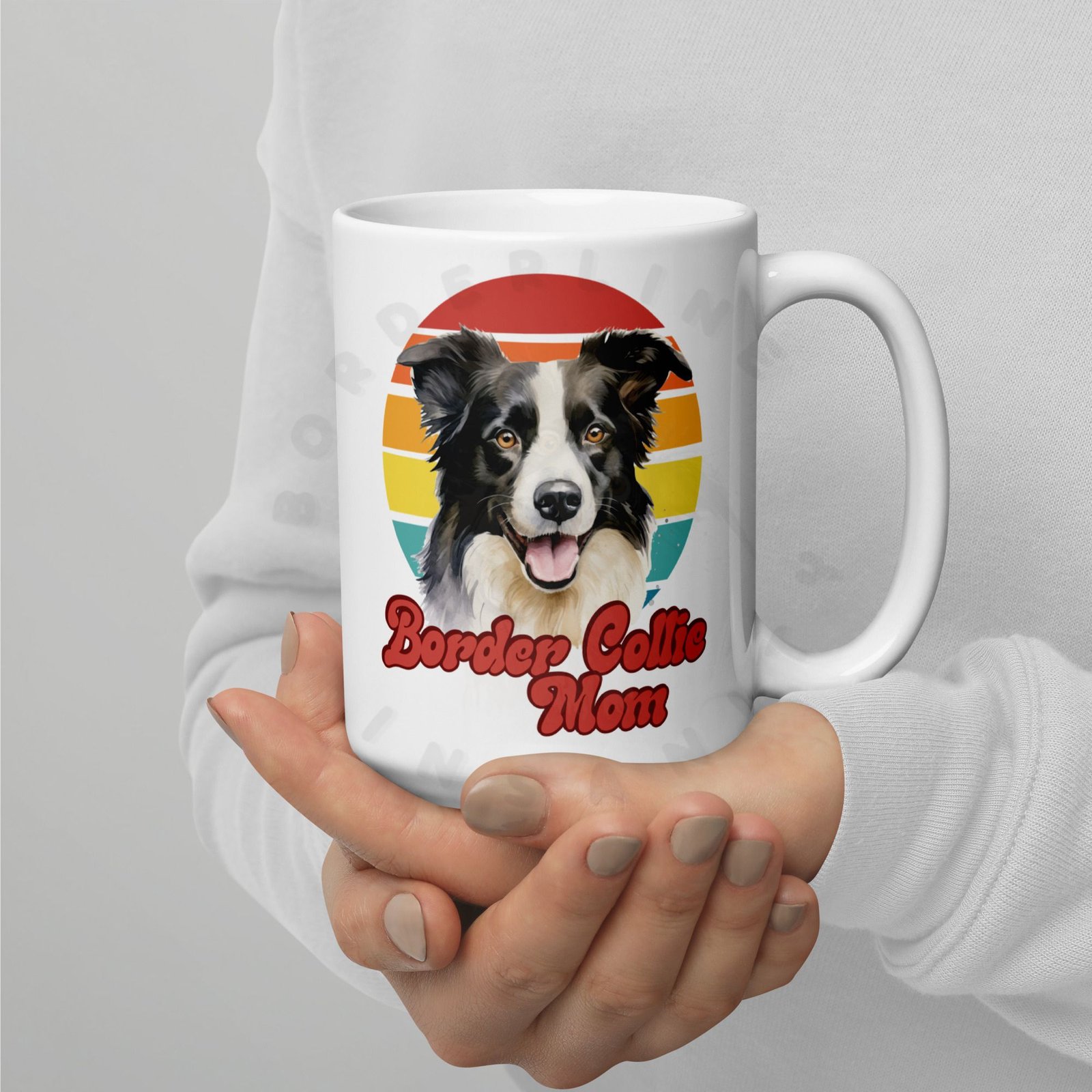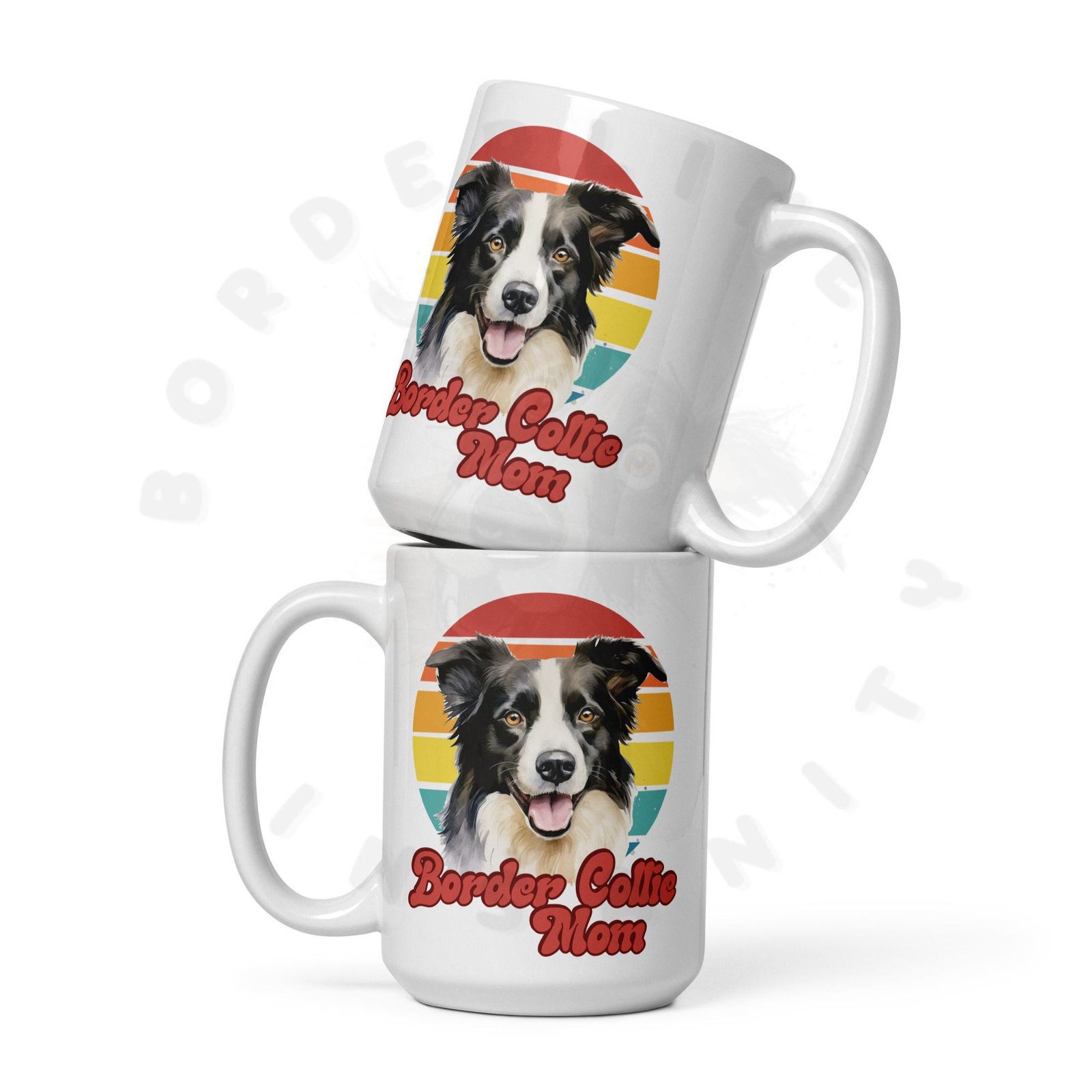 Border Collie Mom Mug | Retro Sunset Dog Mom Gift | 15oz Ceramic Coffee Mug