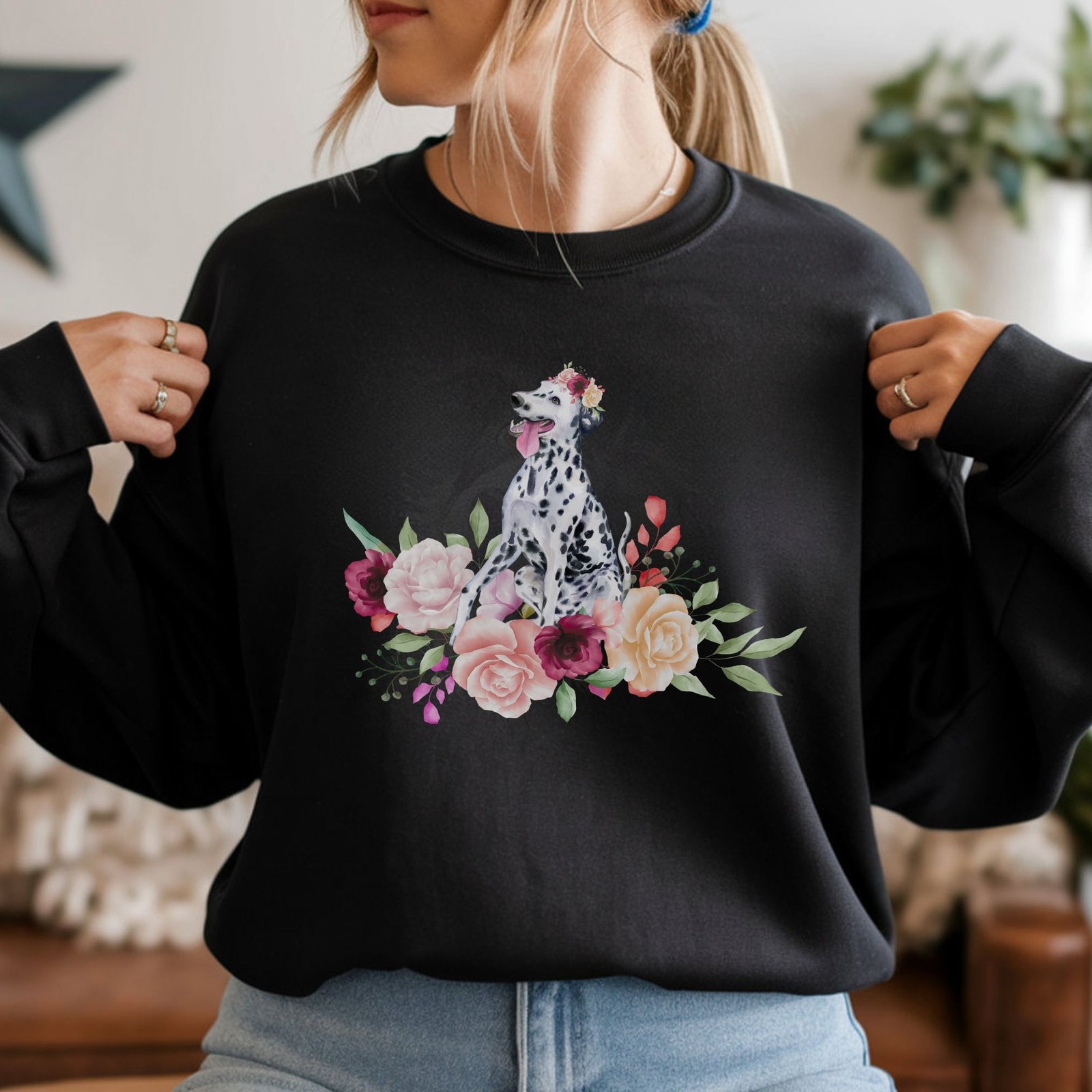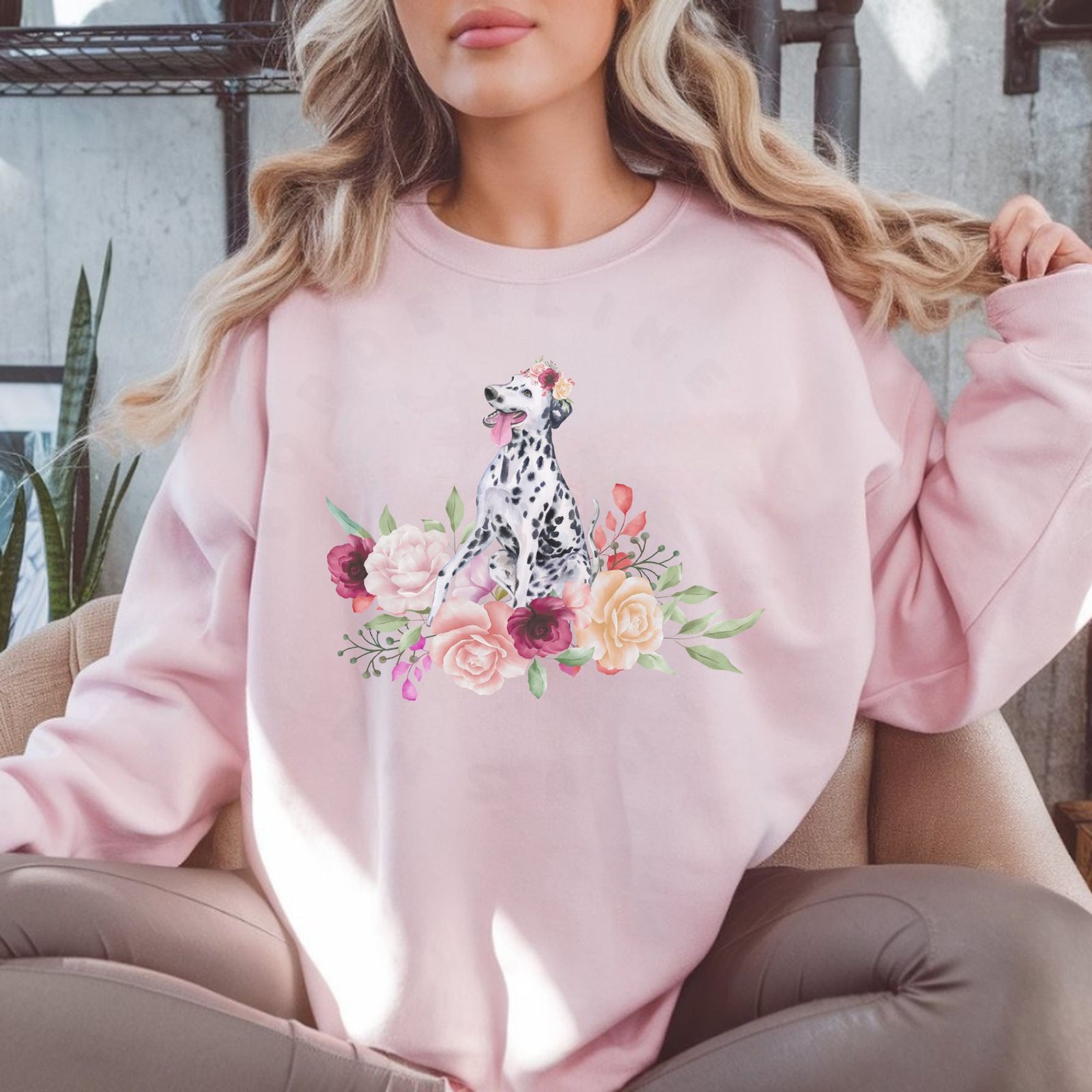 Dalmatian Sweatshirt – Watercolor Floral Dog Lover Gift