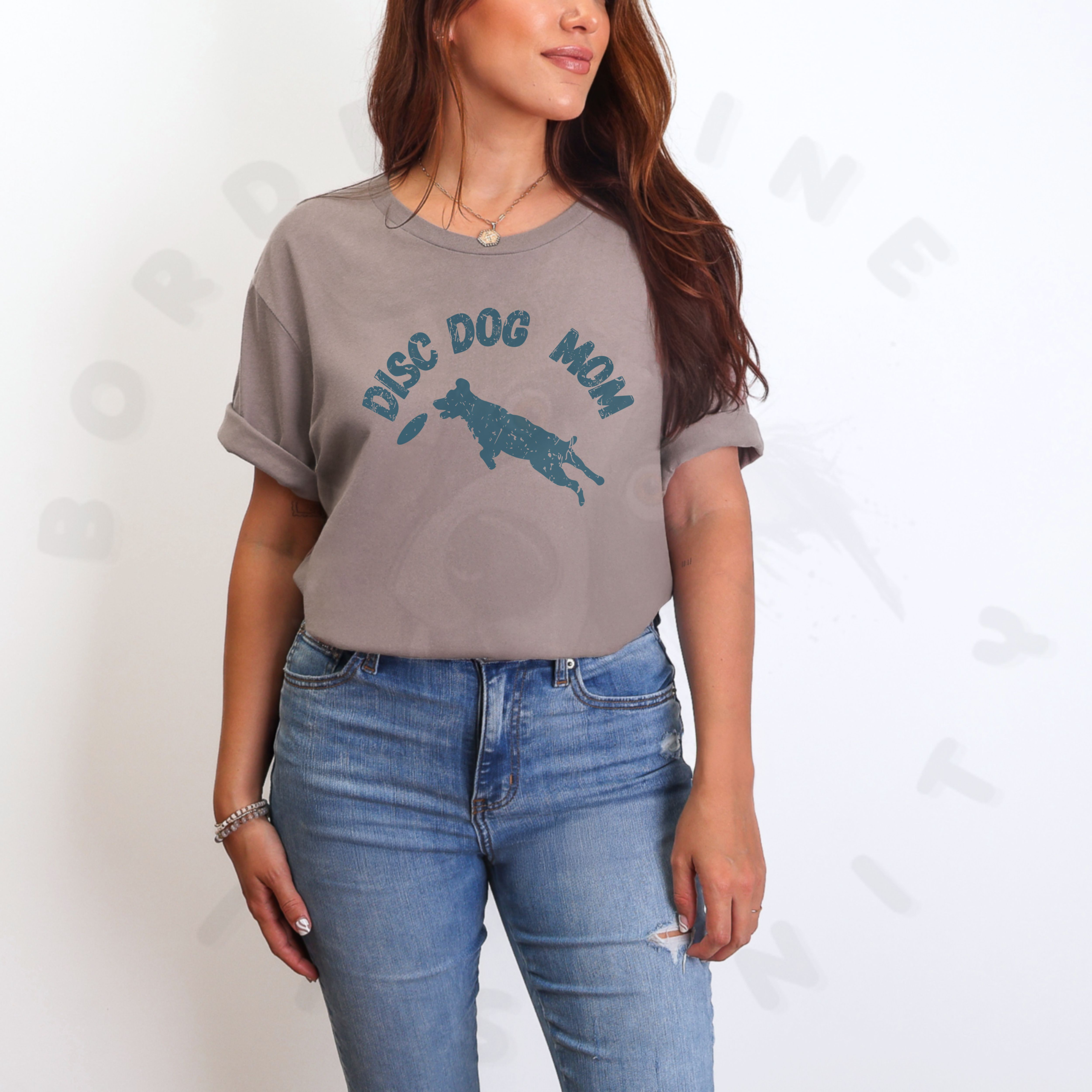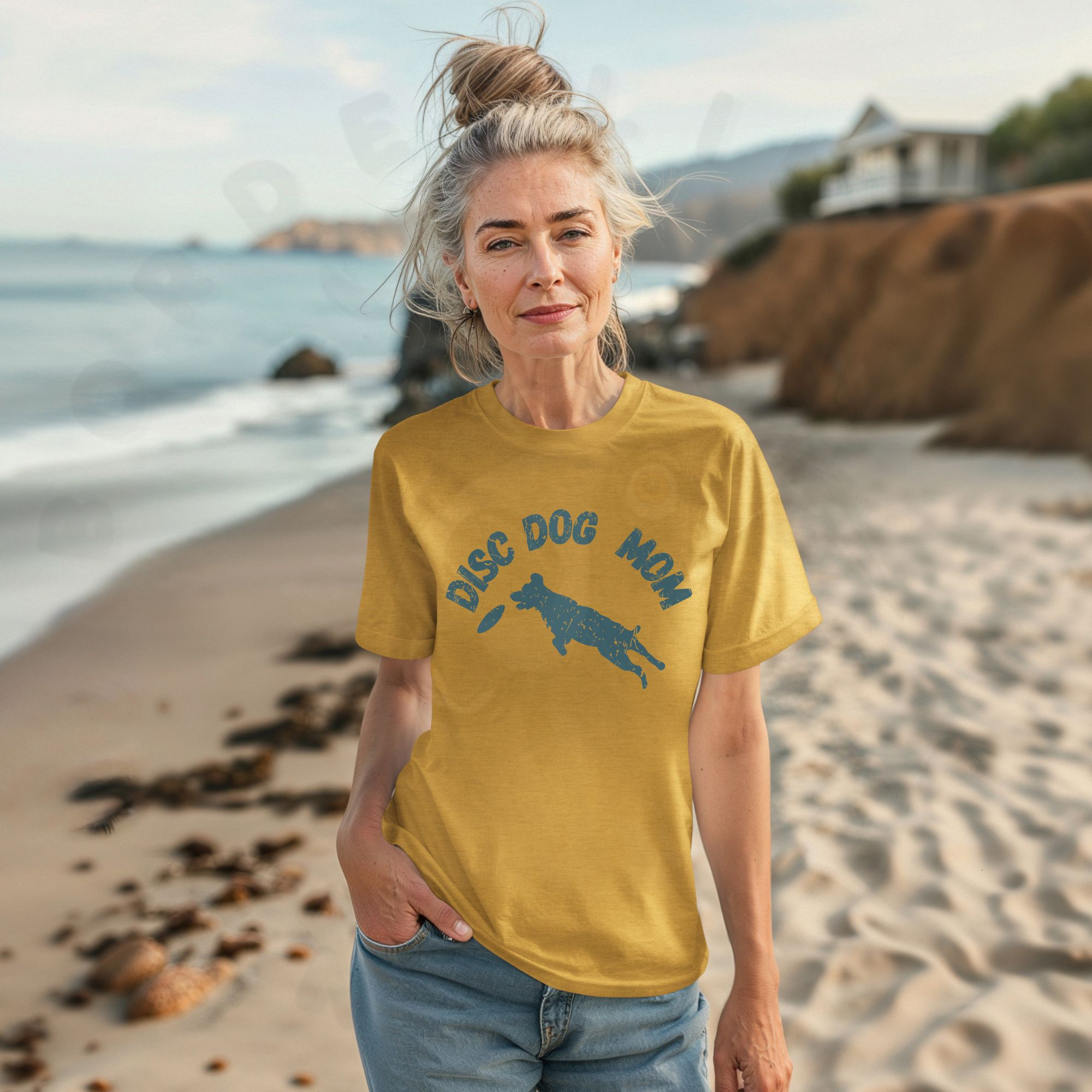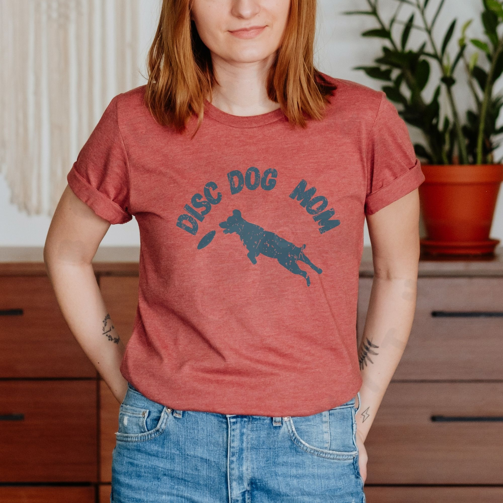 For the dog moms whose pups live for the thrill of the chase and the joy of the catch, the Disc Dog Mom t-shirt is a must-have. Featuring a dynamic silhouette of a dog leaping for a frisbee, this shirt captures the energy and excitement of canine disc sports.