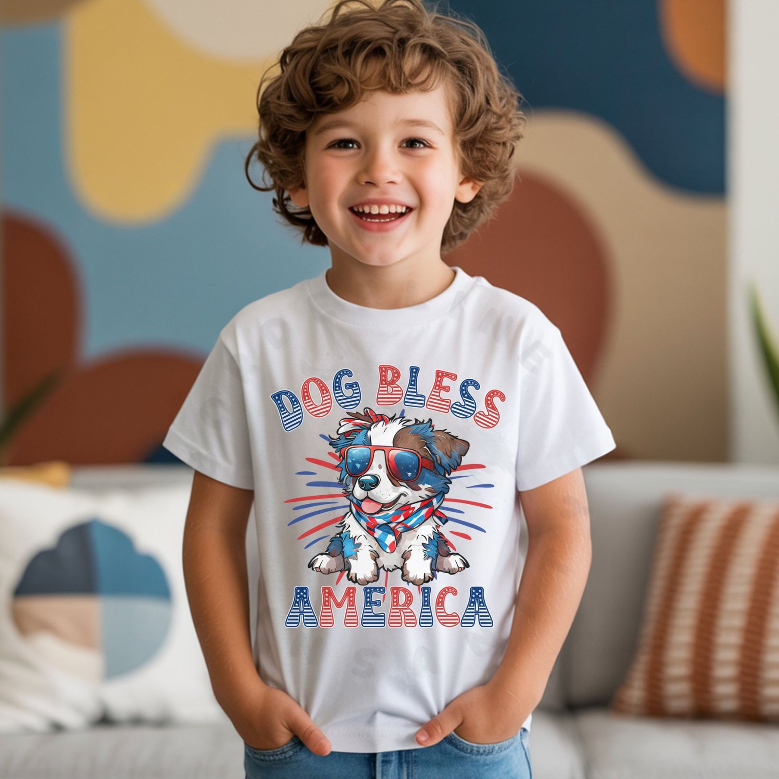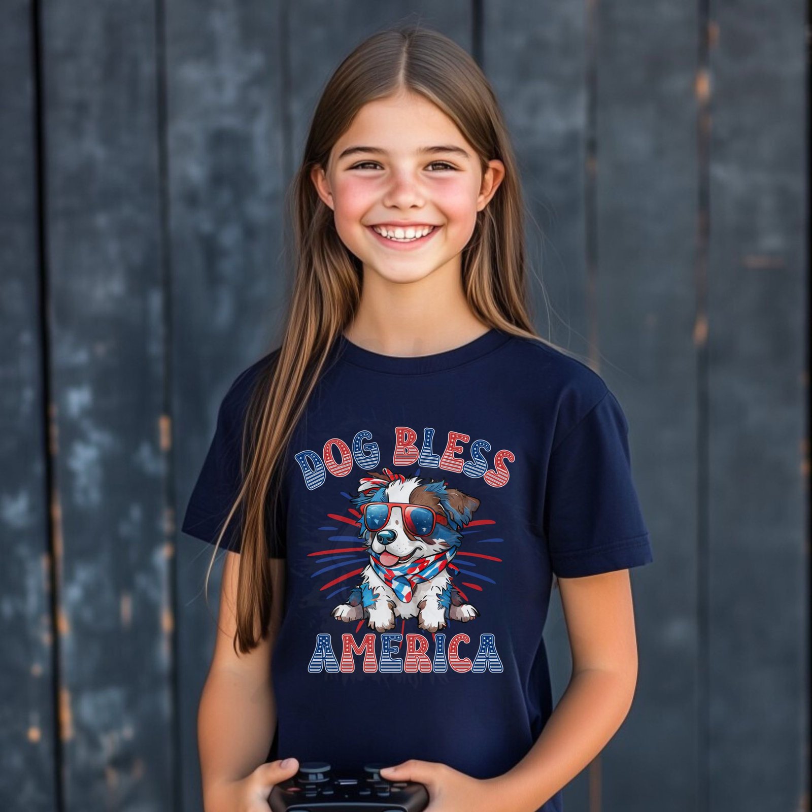 Dog Bless America Australian Shepherd Kids – Youth 4th July