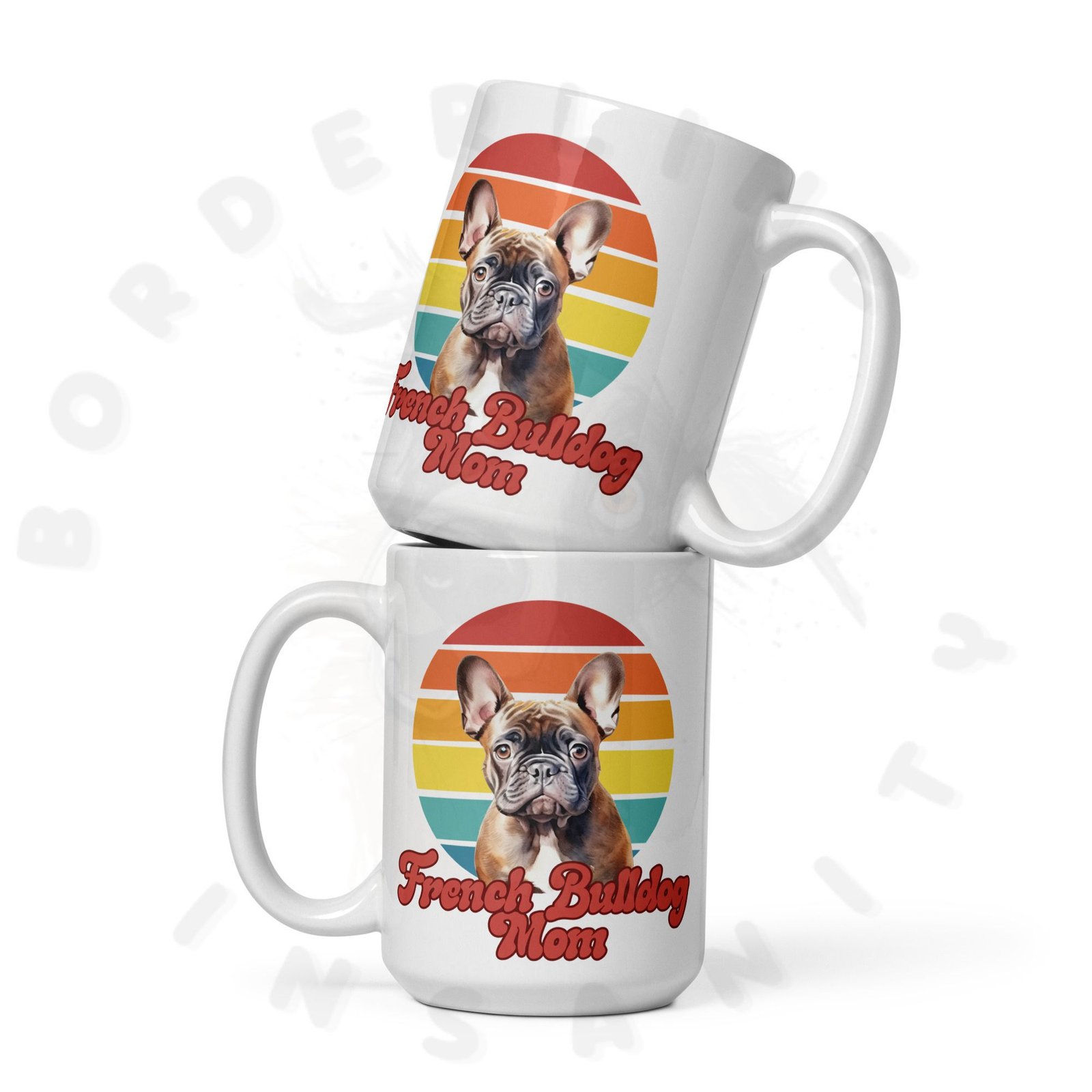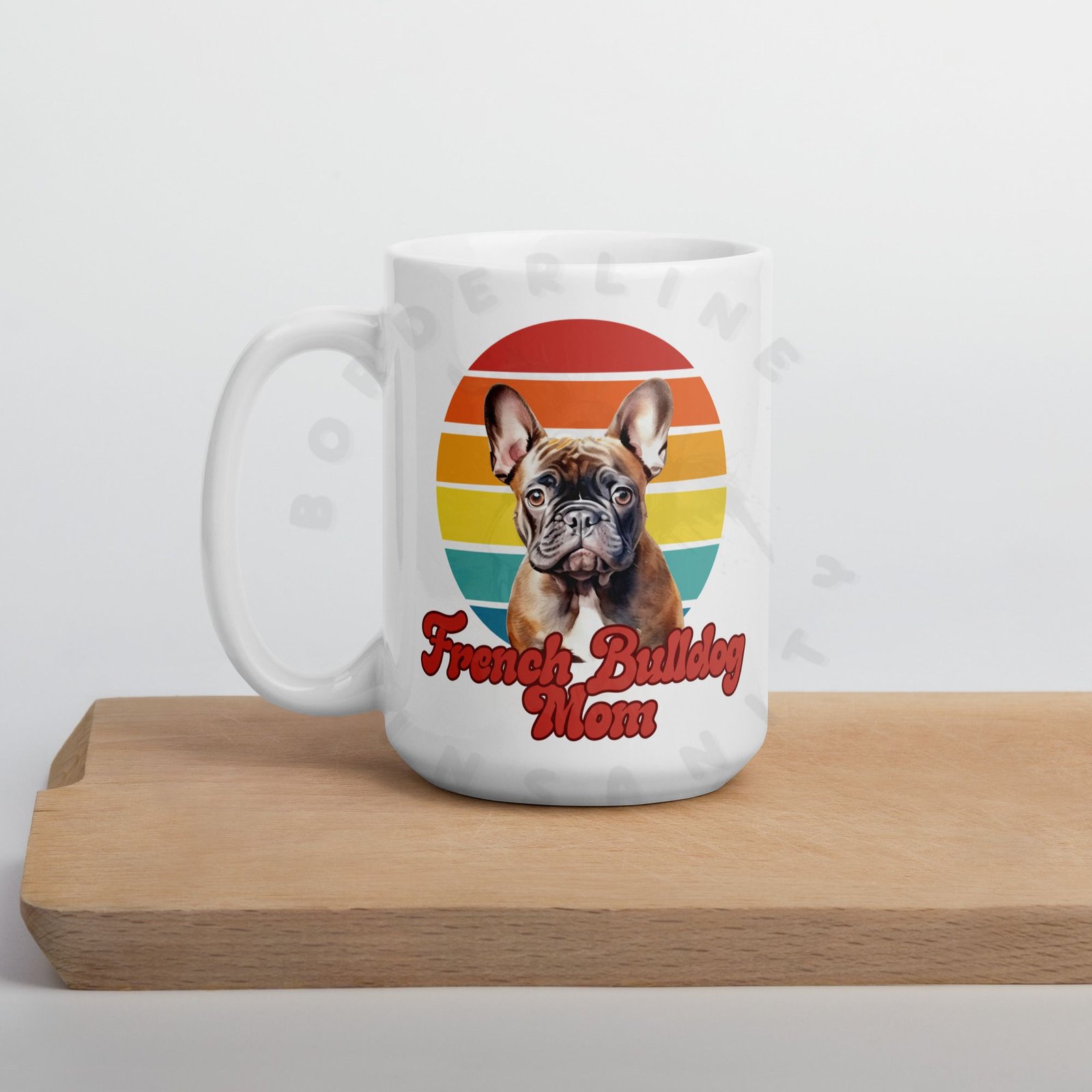 Show off your love for your French Bulldog every morning! This retro-inspired 15oz ceramic mug features a gorgeous watercolor French Bulldog portrait set against a warm sunset circle — bold, beautiful, and made for dog moms who wear their heart on their sleeve (and their mug on their desk).