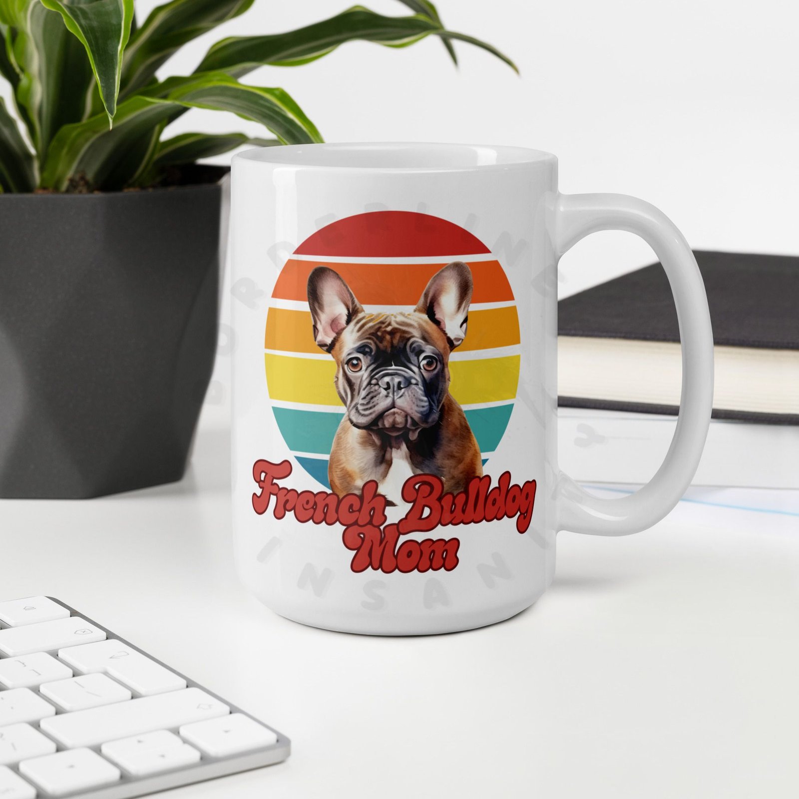 Because your morning coffee deserves a mug that truly understands you. This retro sunset French Bulldog Mom mug is designed for the dog mom who considers her French Bulldog a member of the family — because obviously they are.