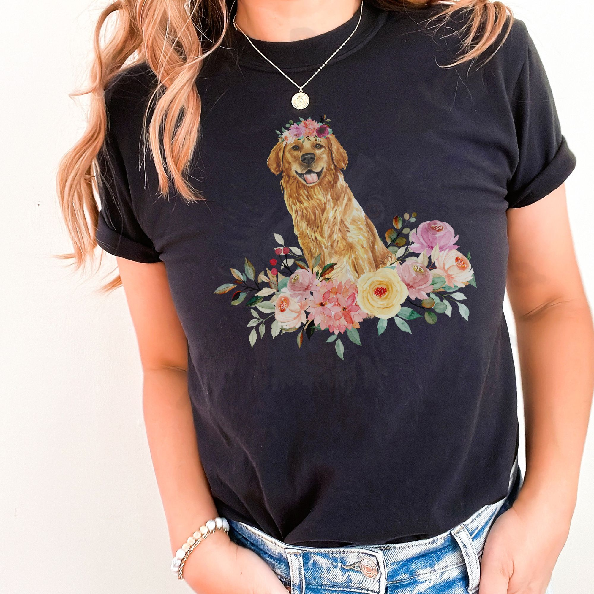 Be the first to review “Golden Retriever in Flowers T-Shirt”