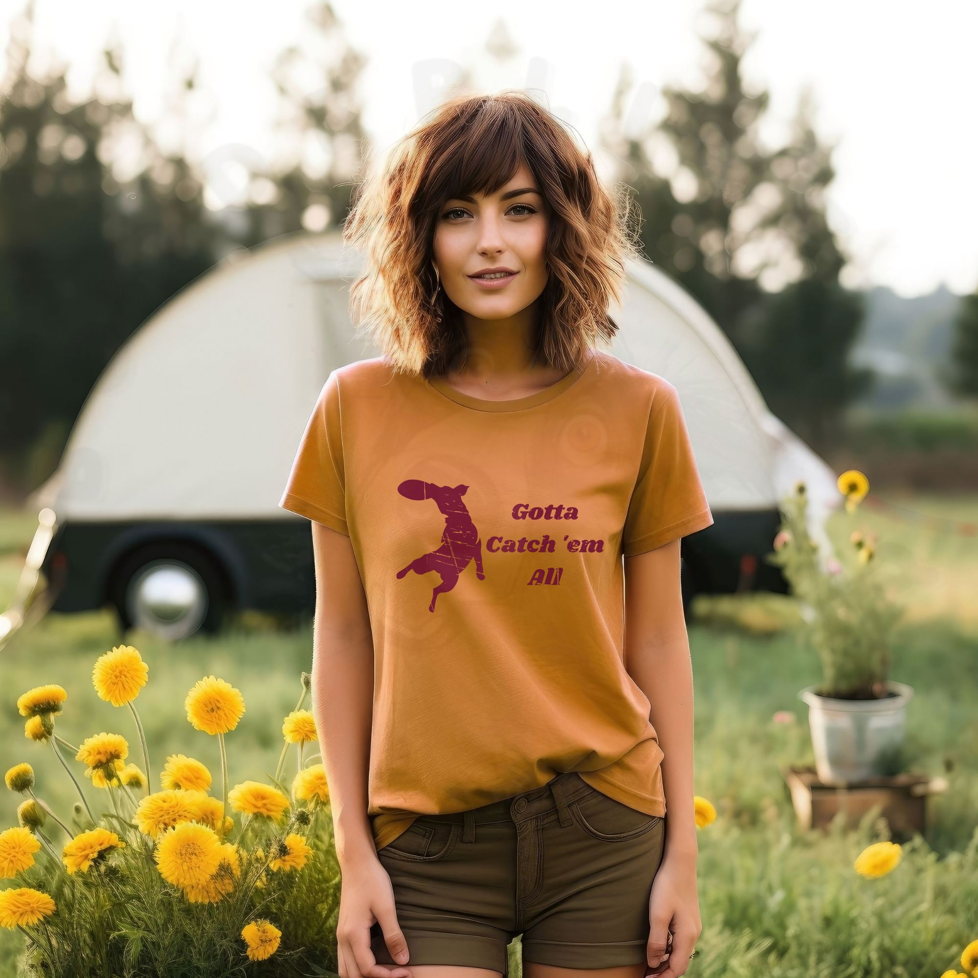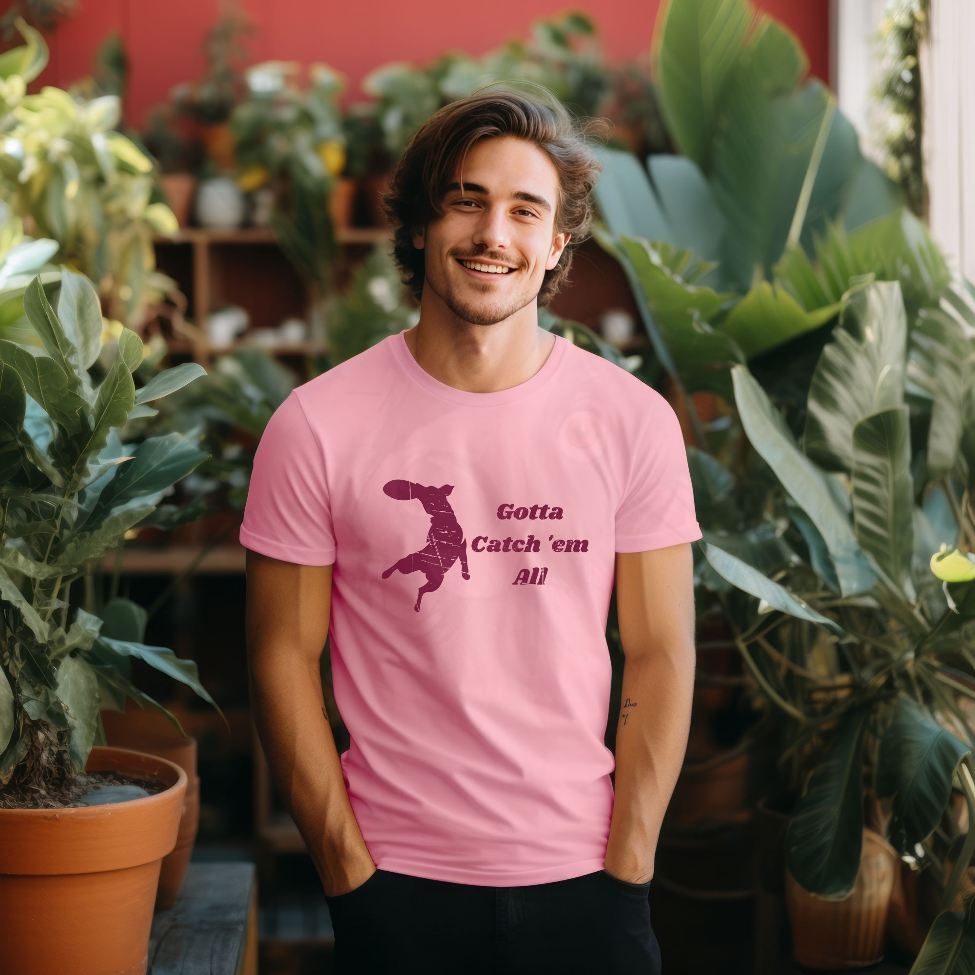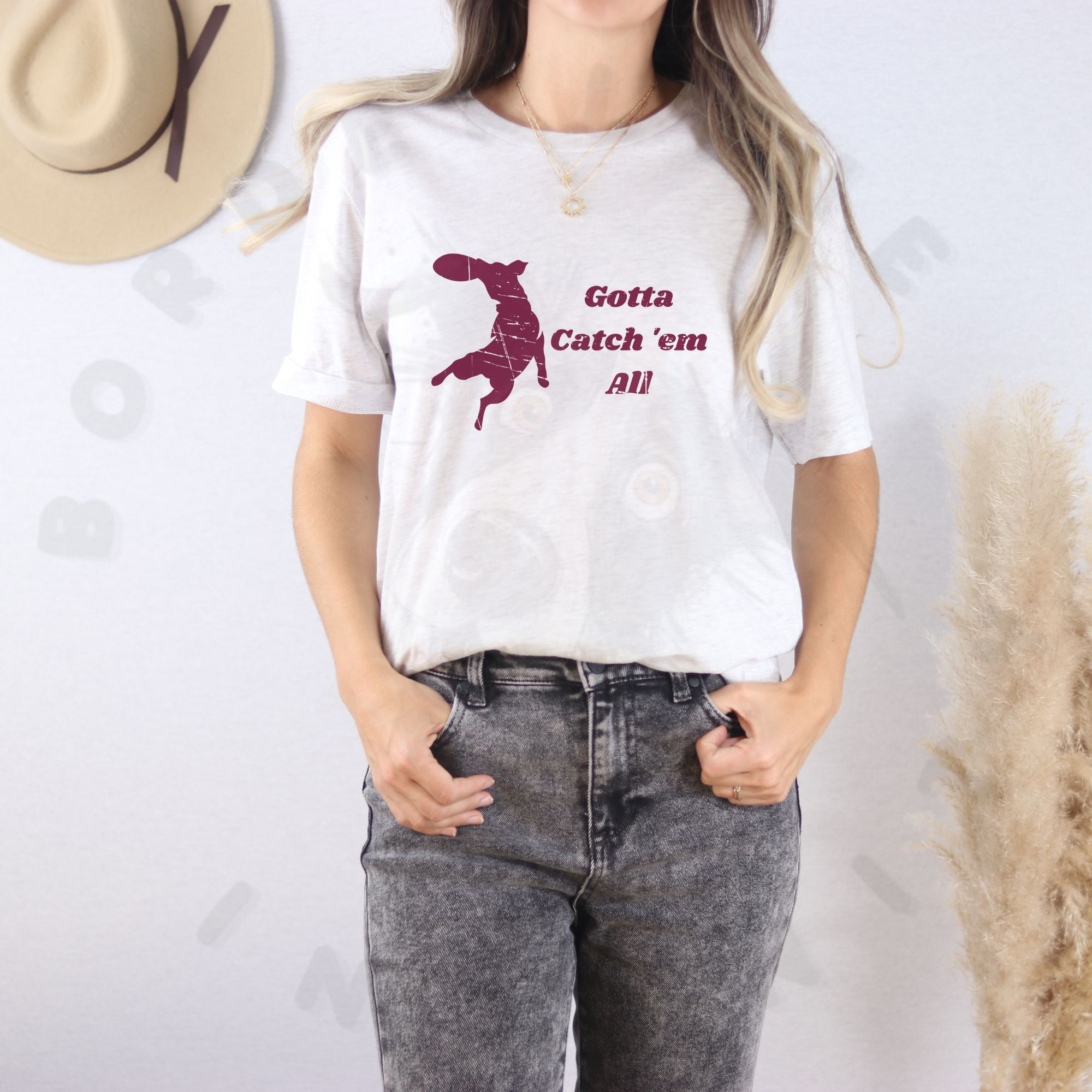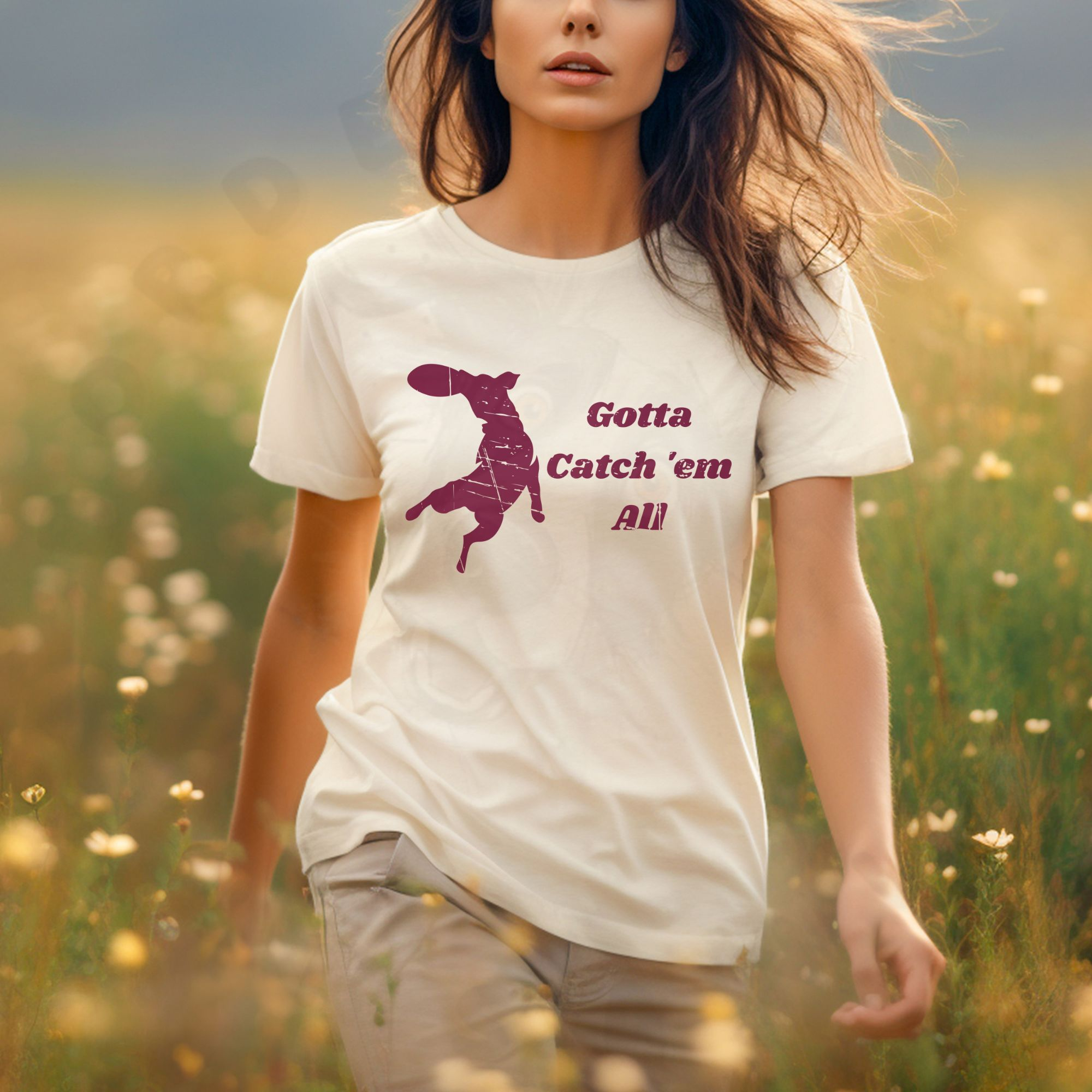 Disc dog lovers know the thrill of every catch! This tee features the phrase “Gotta Catch ’Em All” alongside the silhouette of a leaping dog snagging a frisbee mid-air. Perfect for handlers, trainers, and competitors who live for the excitement of the sport. Comfortable and durable, it’s great for practice sessions, tournaments, or simply showing off your passion for disc dogs. Makes a fun and unique gift for dog sport fans and frisbee-loving pet parents.