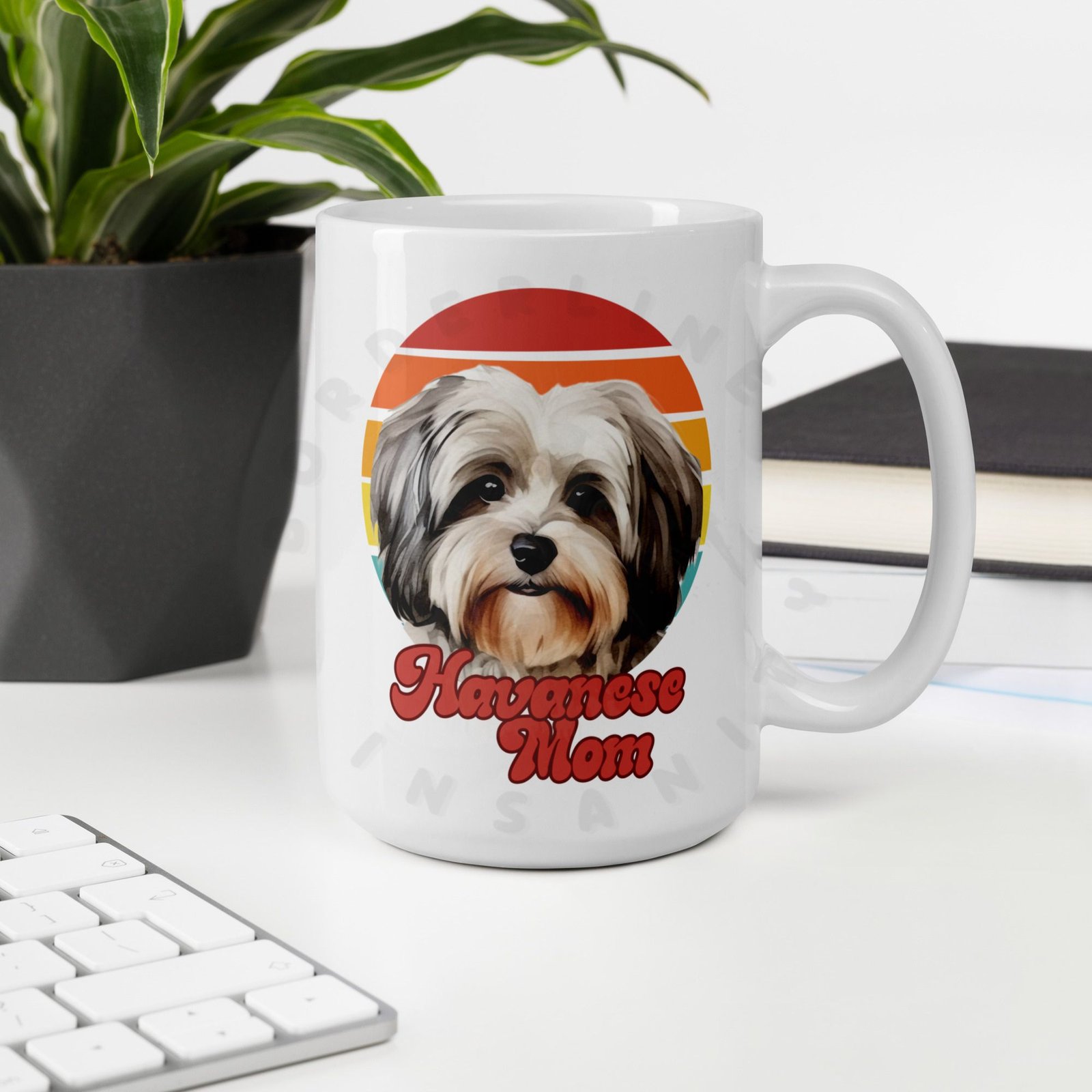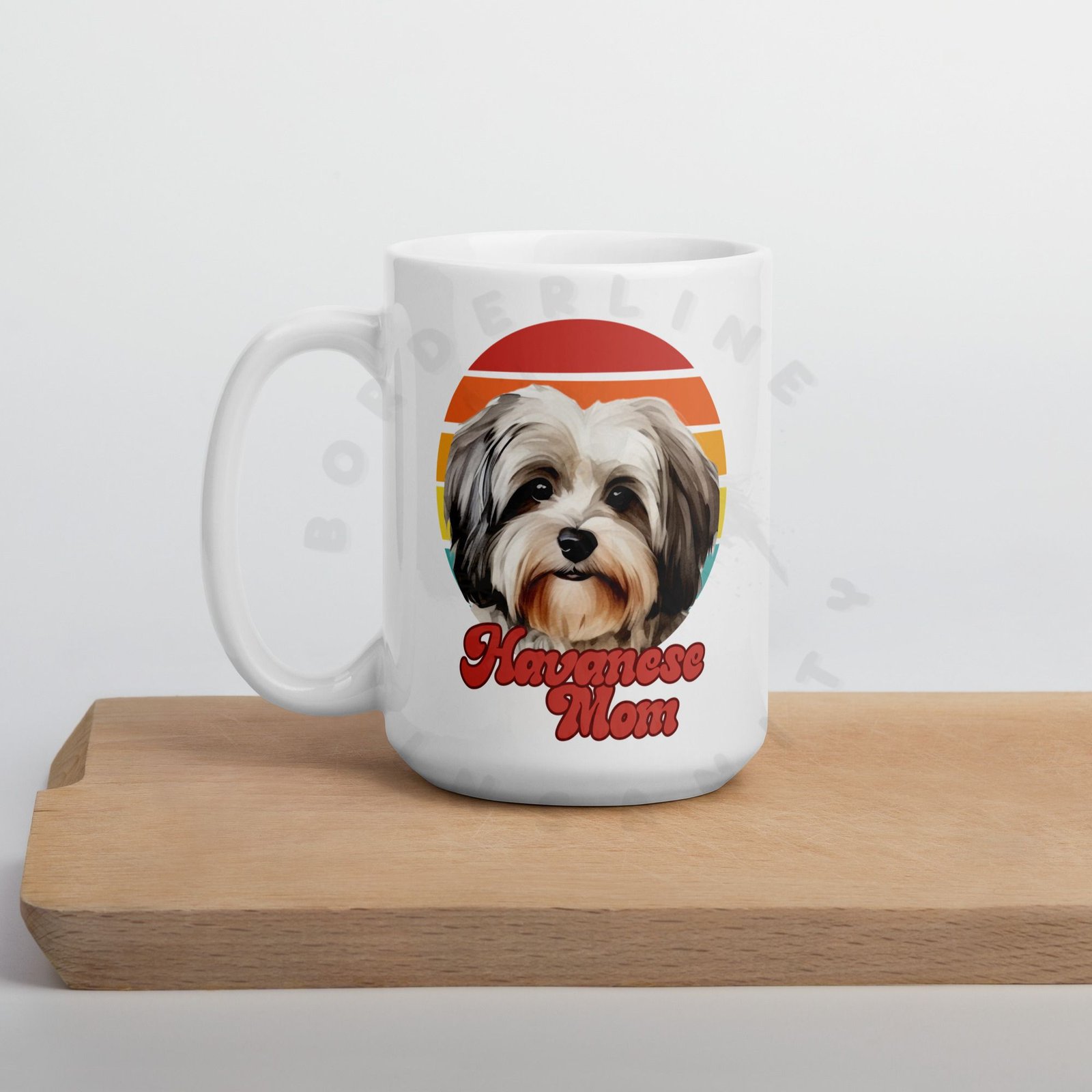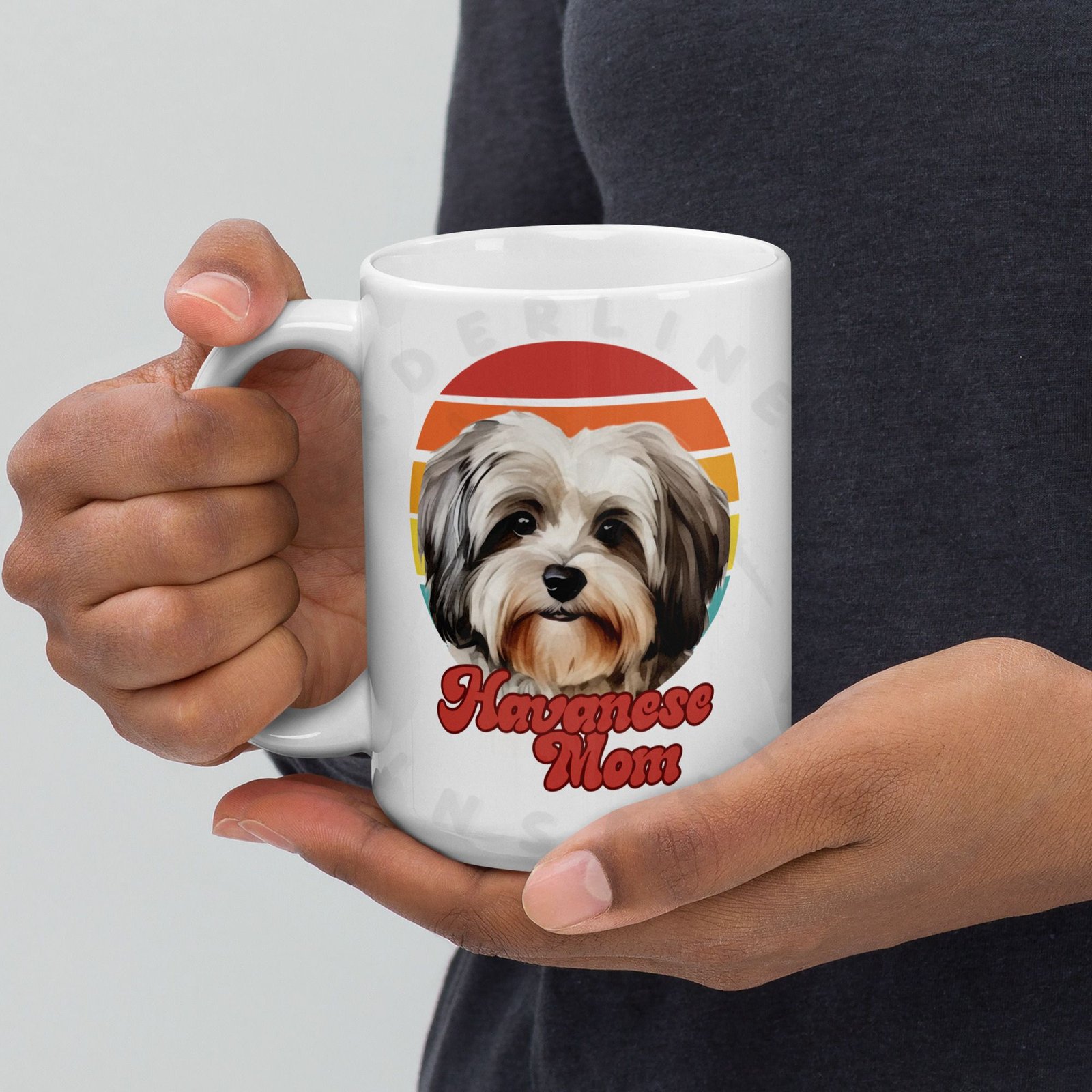 Havanese Mom Mug | Retro Sunset Dog Mom Gift | 15oz Ceramic Coffee Mug