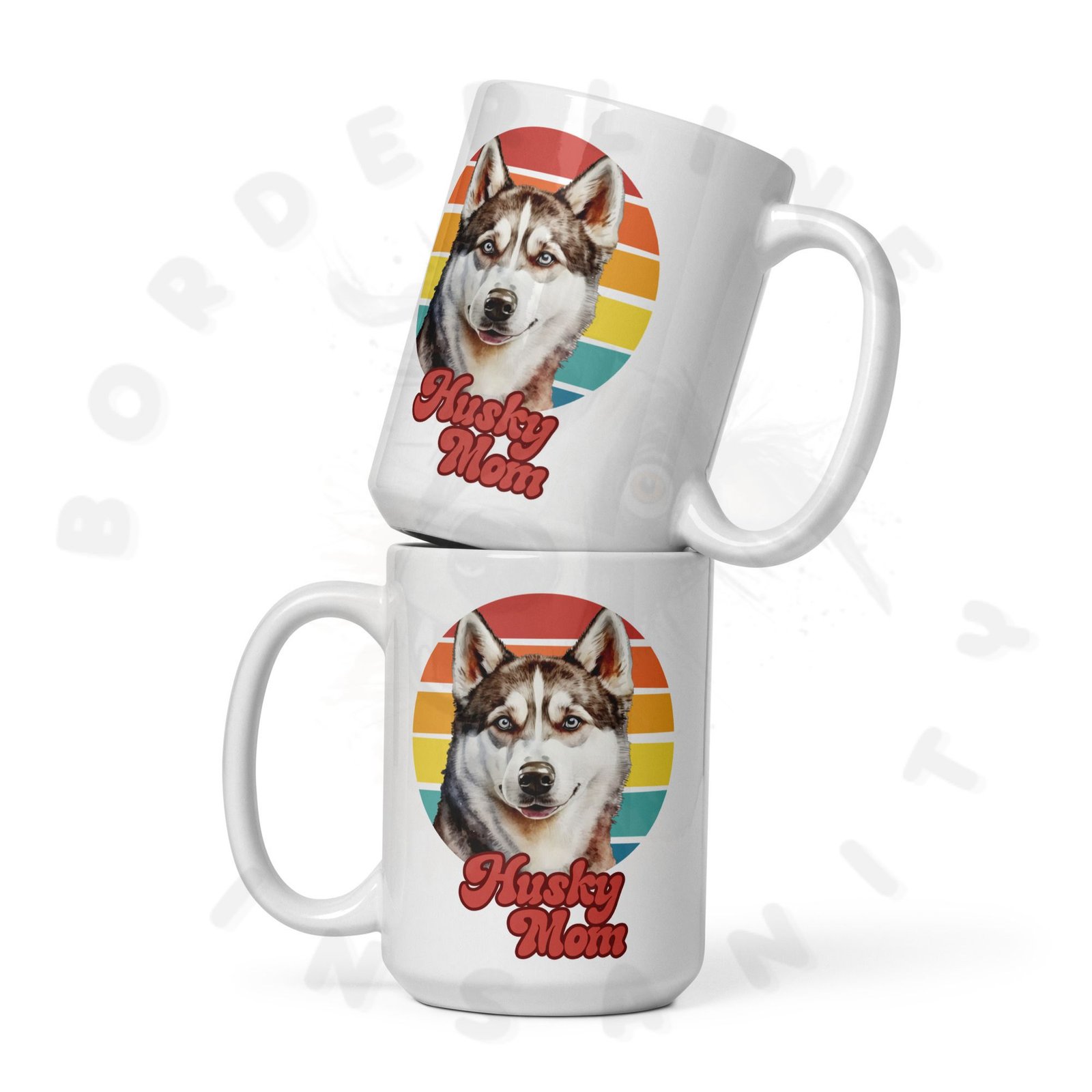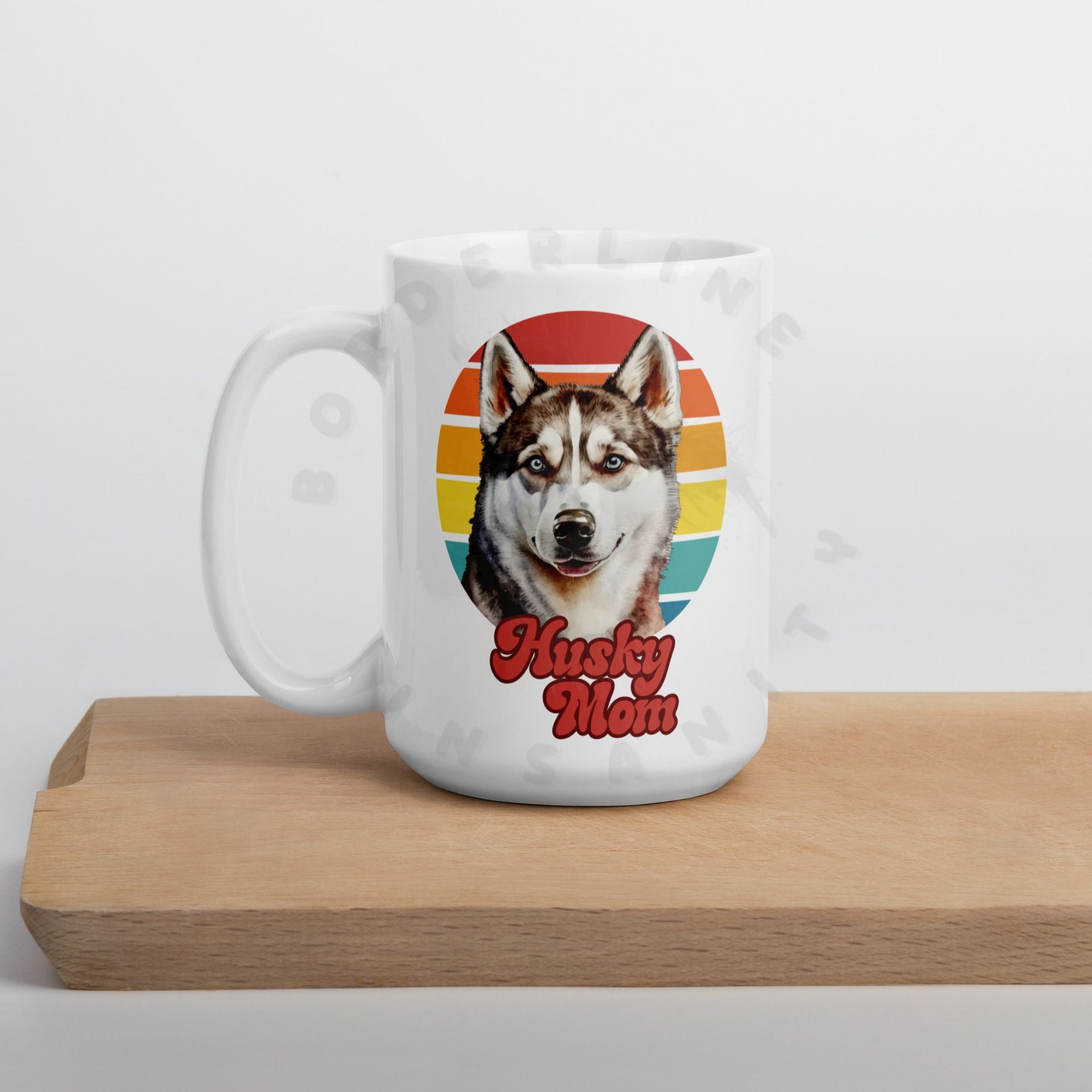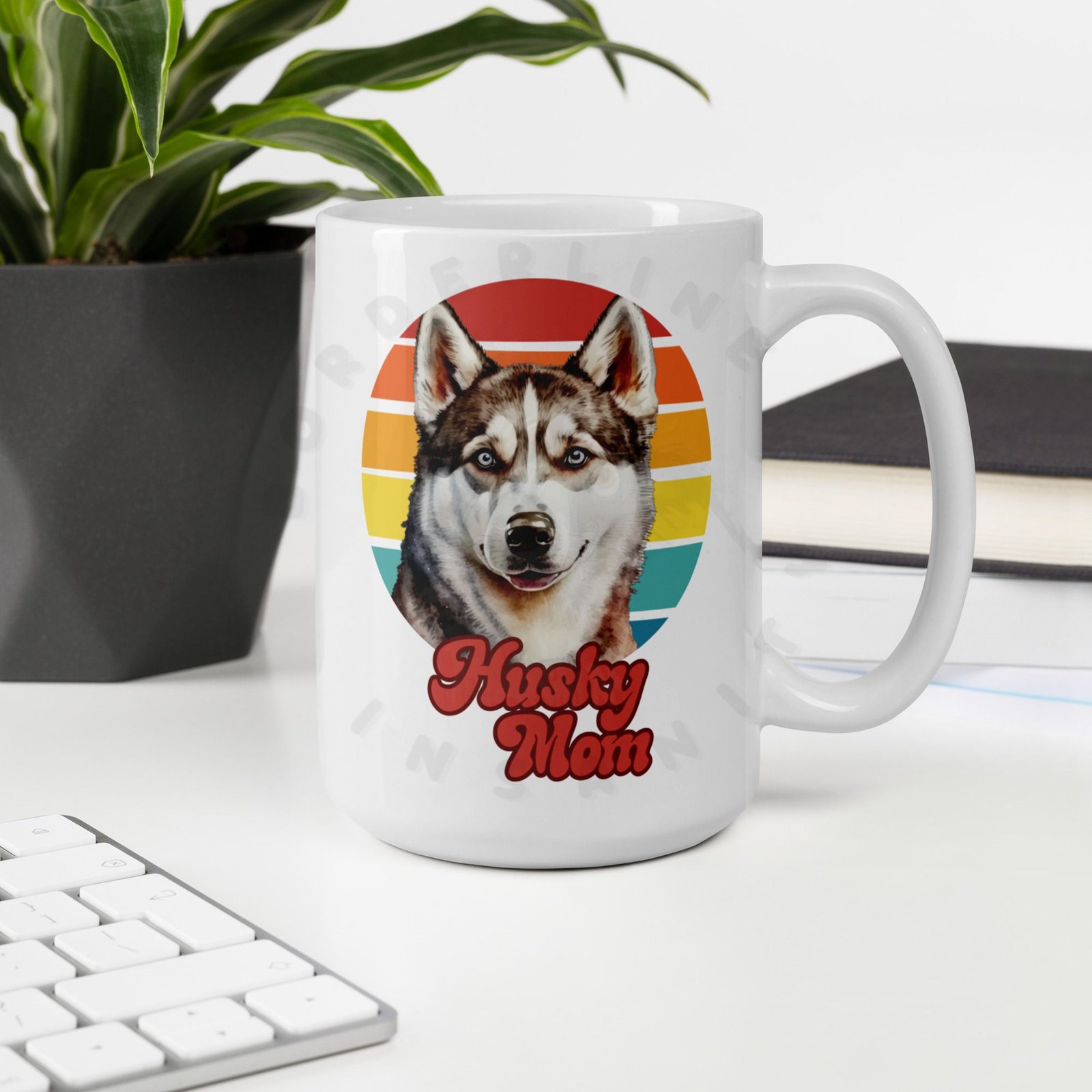Husky Mom Mug | Retro Sunset Dog Mom Gift | 15oz Ceramic Coffee Mug