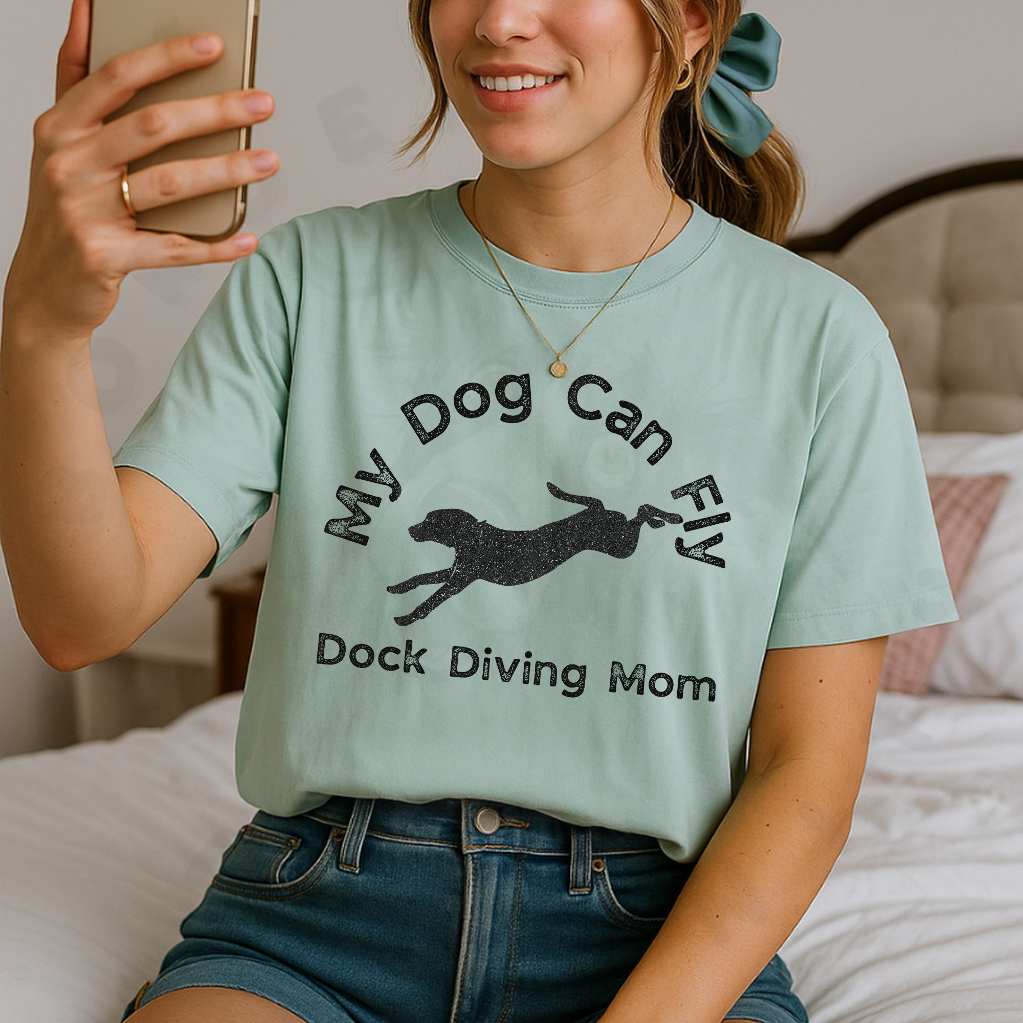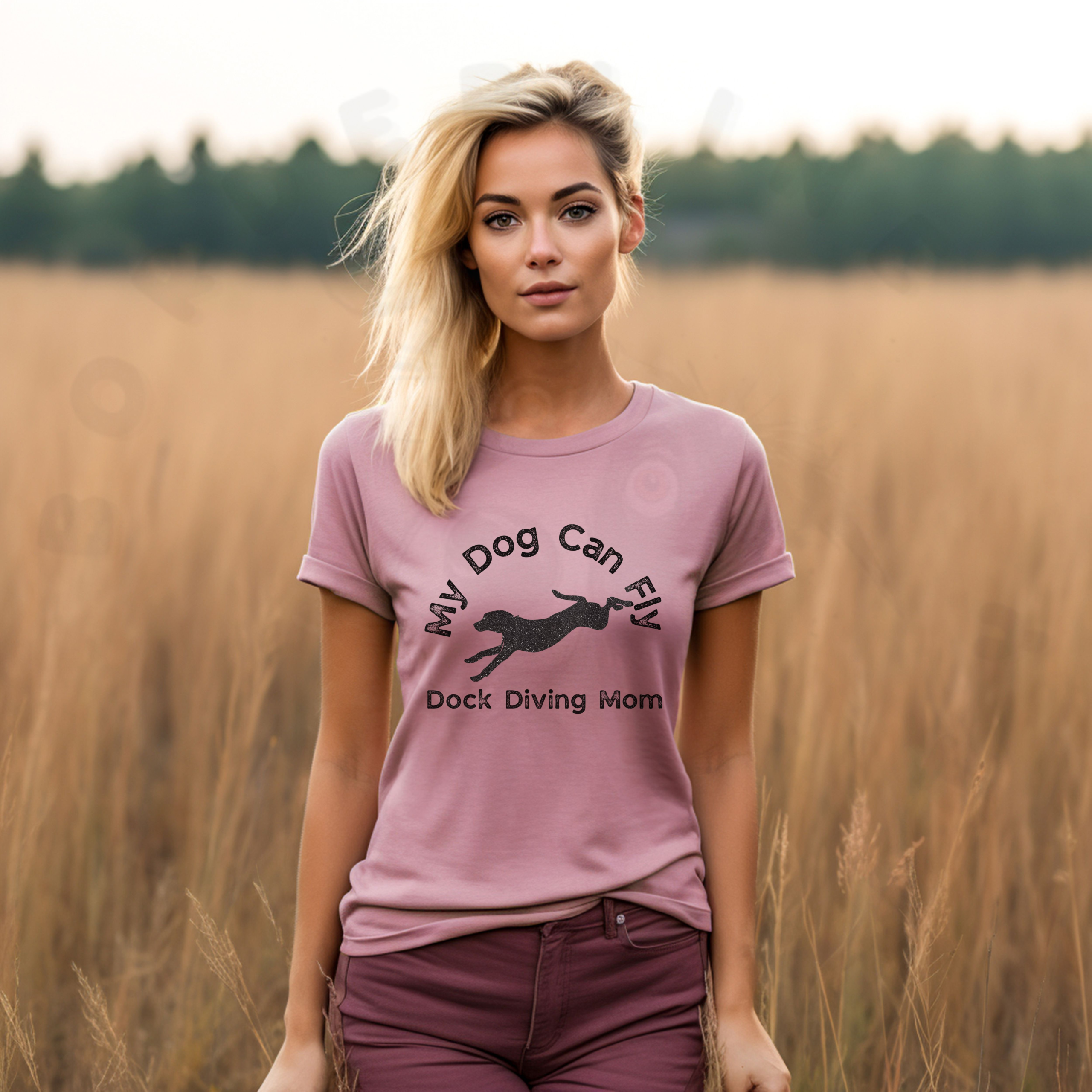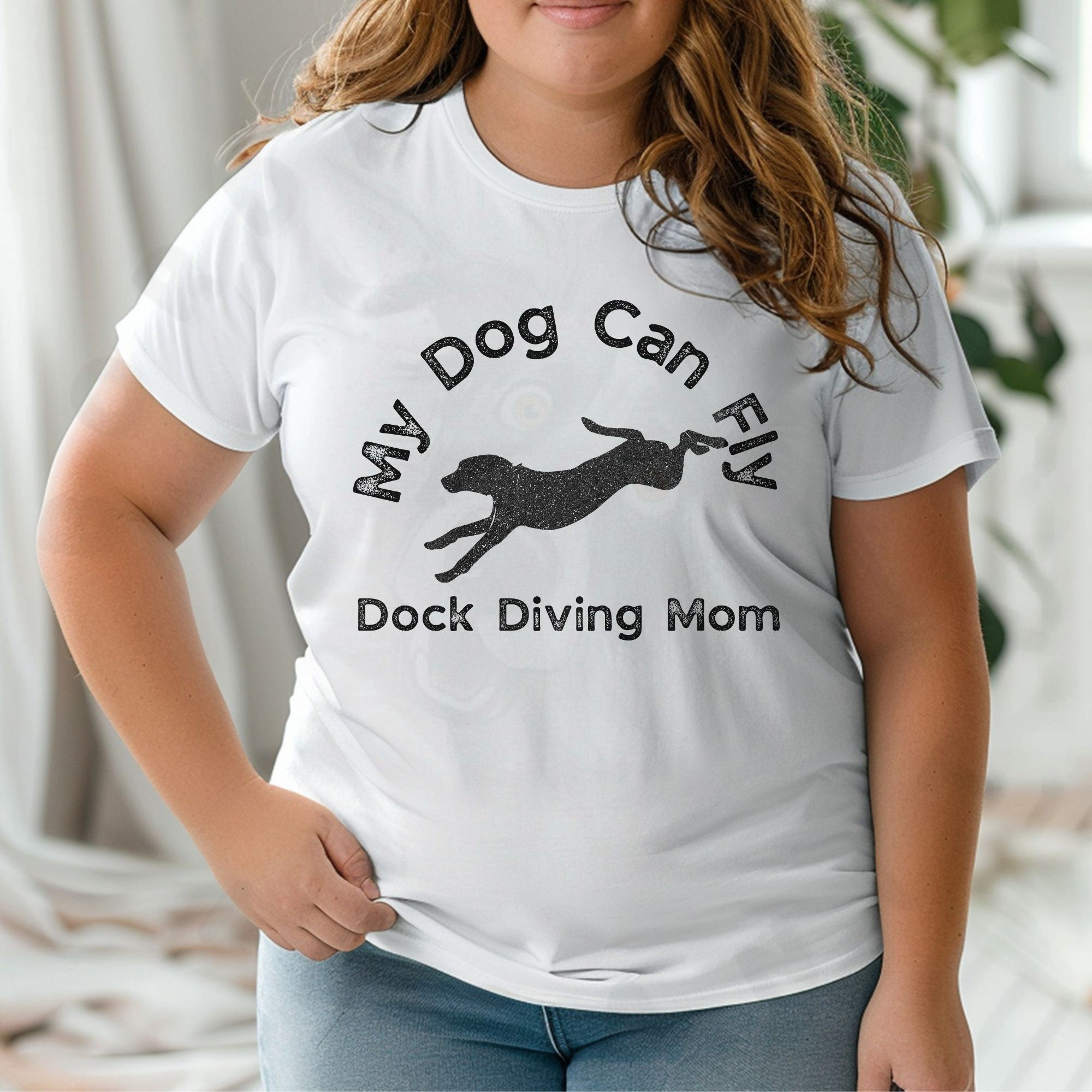 Celebrate your dog’s leaps with this “My Dog Can Fly – Dock Diving Mom” tee. Soft, comfy, and perfect for dog sport lovers.