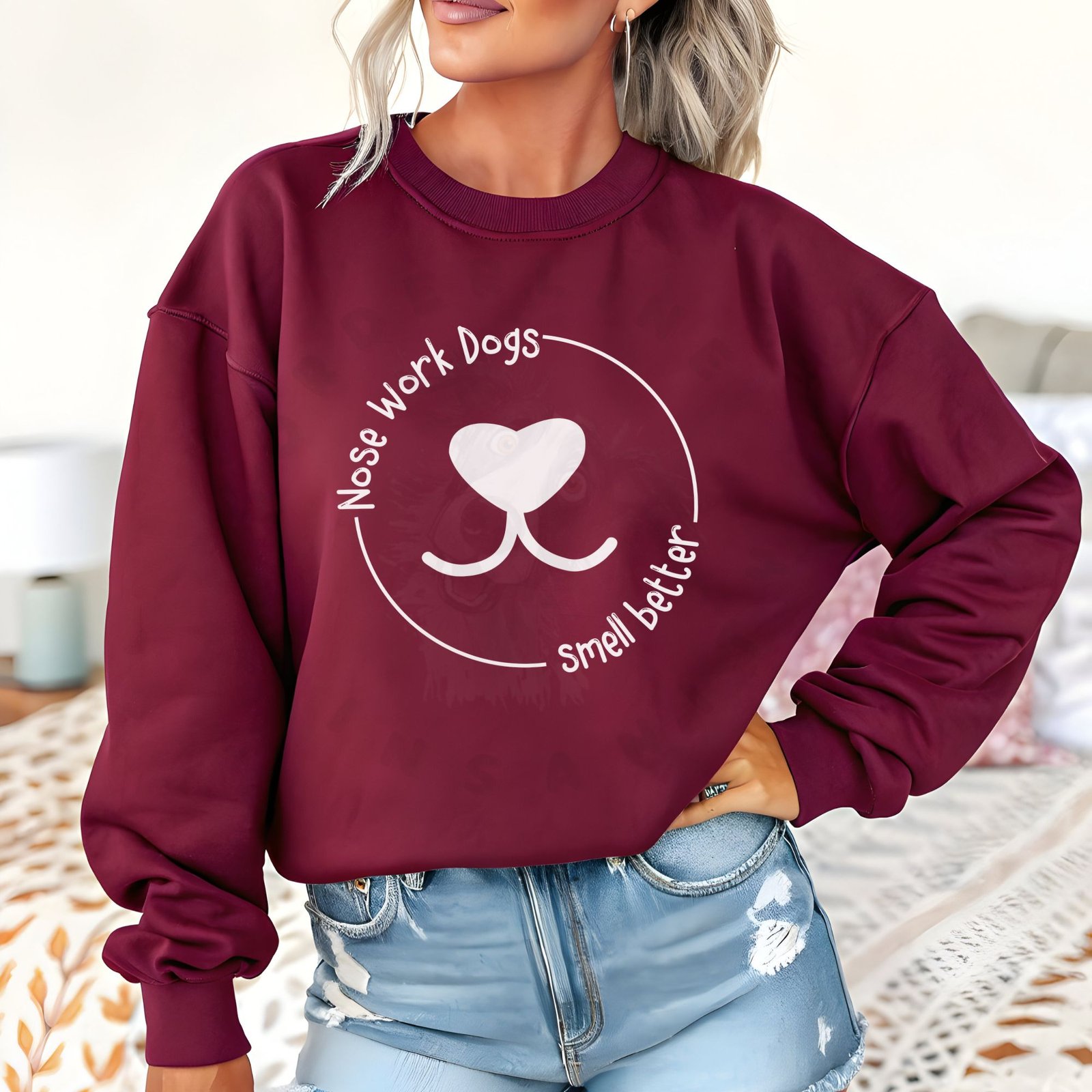 “Nose Work Dogs Smell Better” – because it’s true on so many levels! This clever sweatshirt celebrates the amazing world of nose work and scent detection with a playful pun and adorable dog nose design. Whether your dog is a certified nose work champion or just thinks they’re a professional sniffer, this cozy sweatshirt is perfect for handlers who understand that their dog’s nose knows best.
