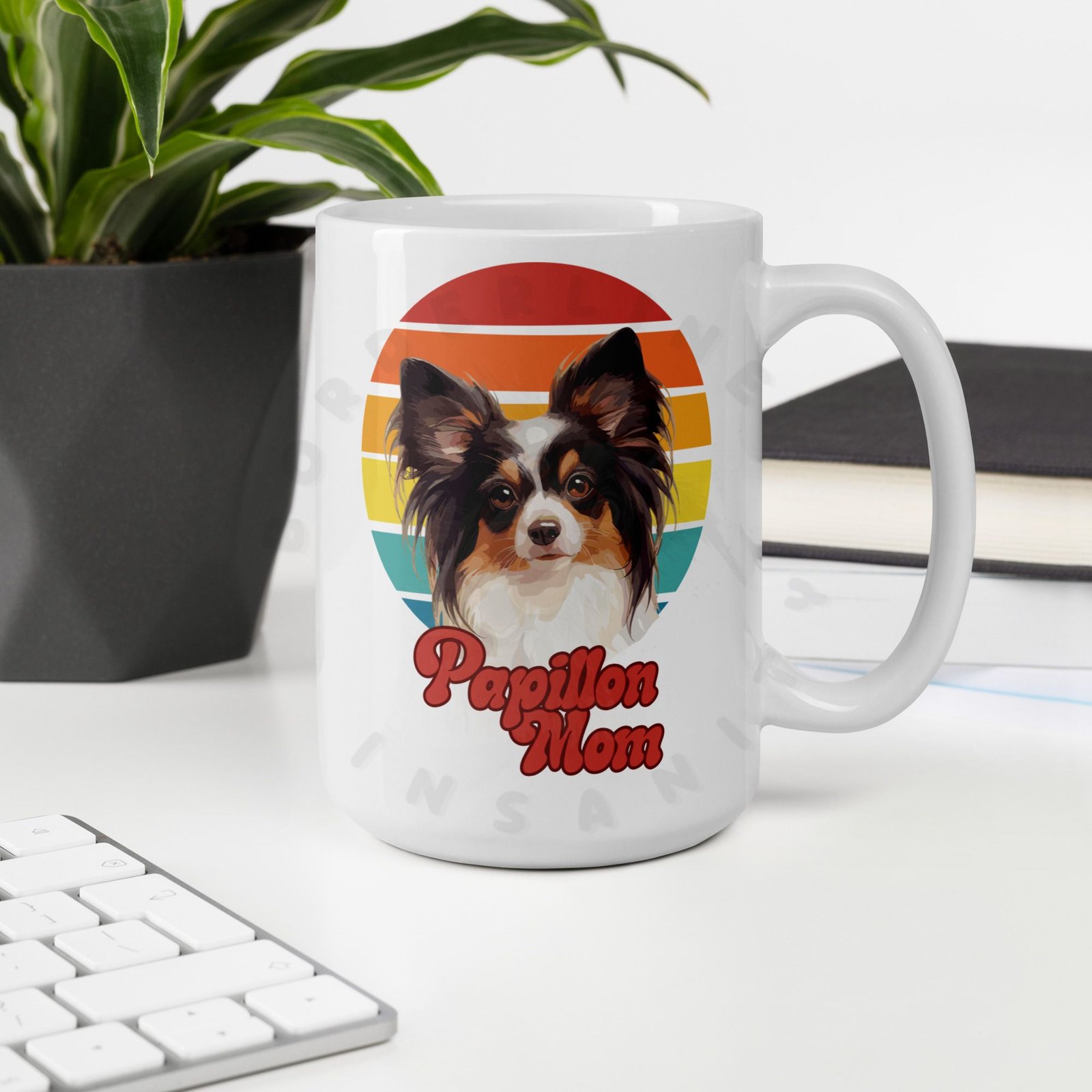 Because your morning coffee deserves a mug that truly understands you. This retro sunset Papillon Mom mug is designed for the dog mom who considers her Papillon a member of the family — because obviously they are.