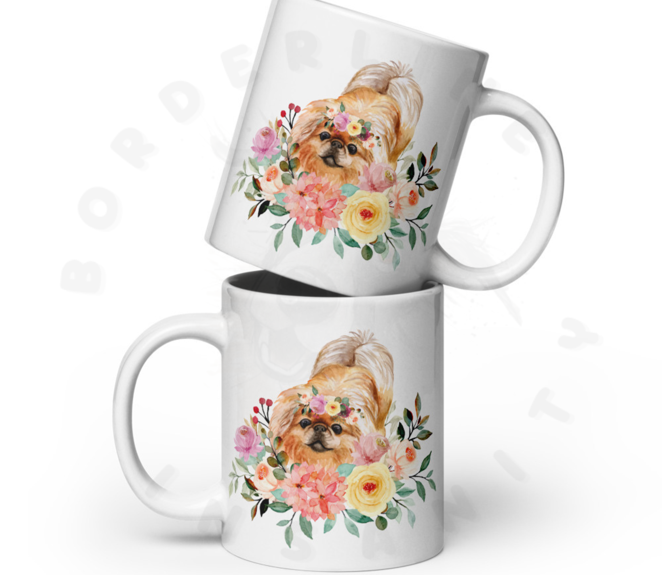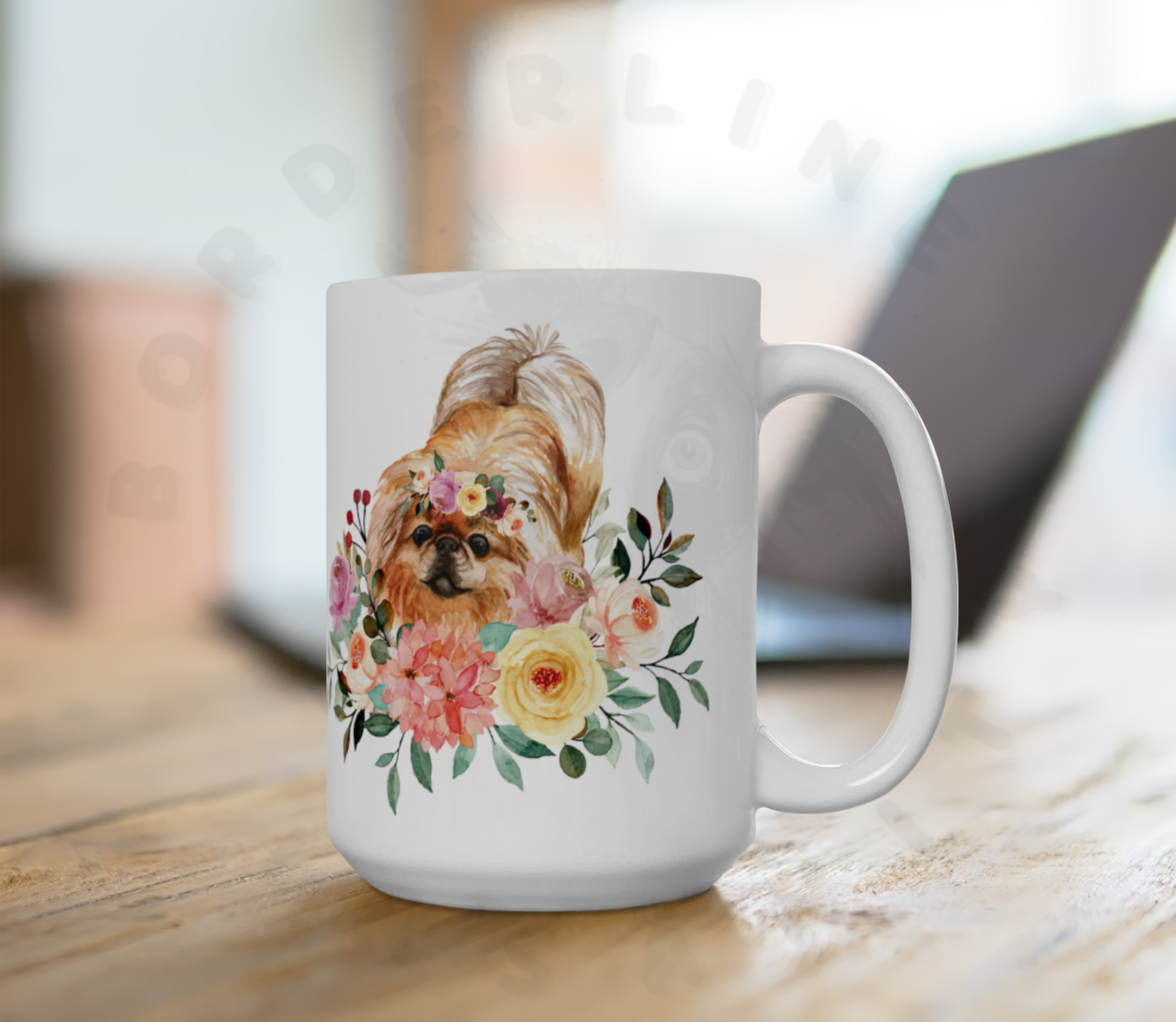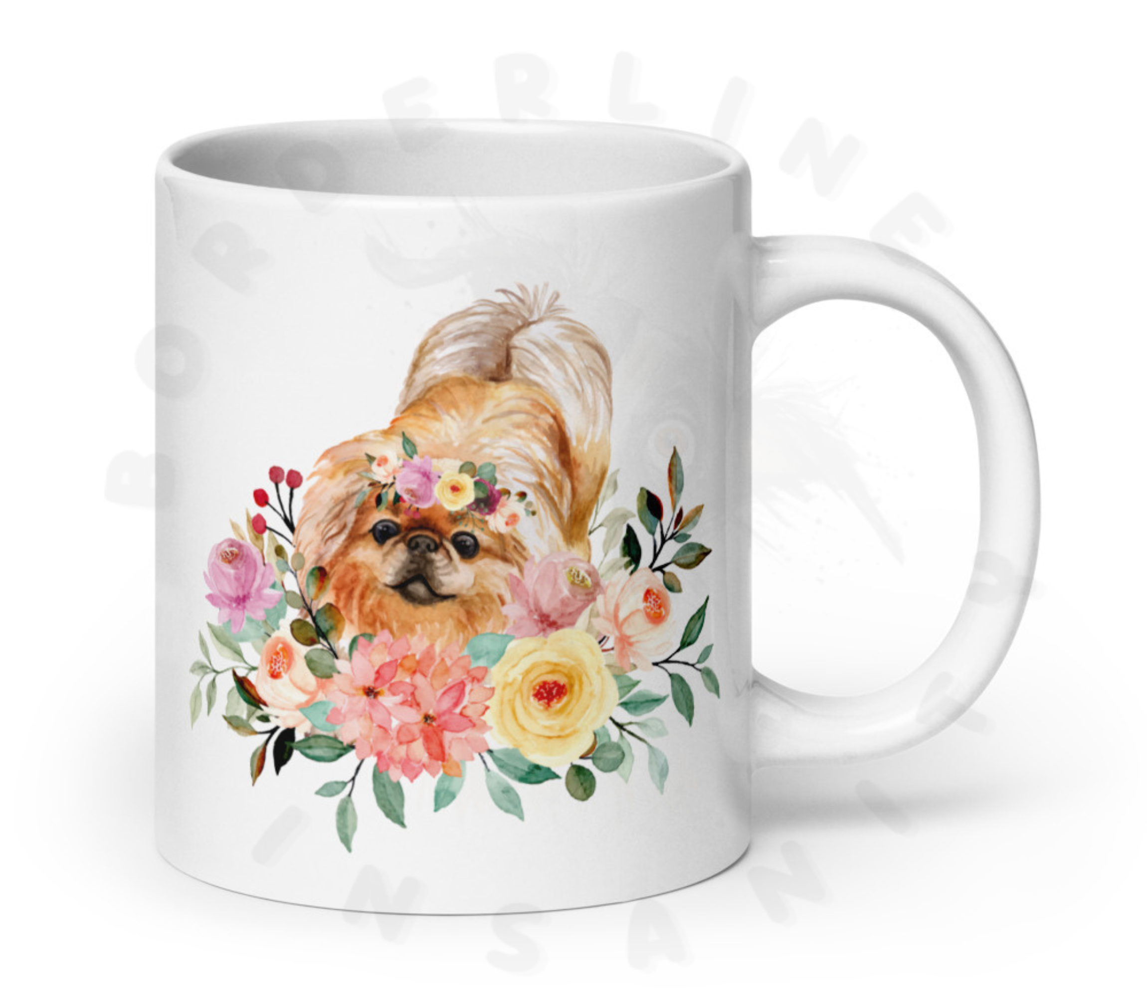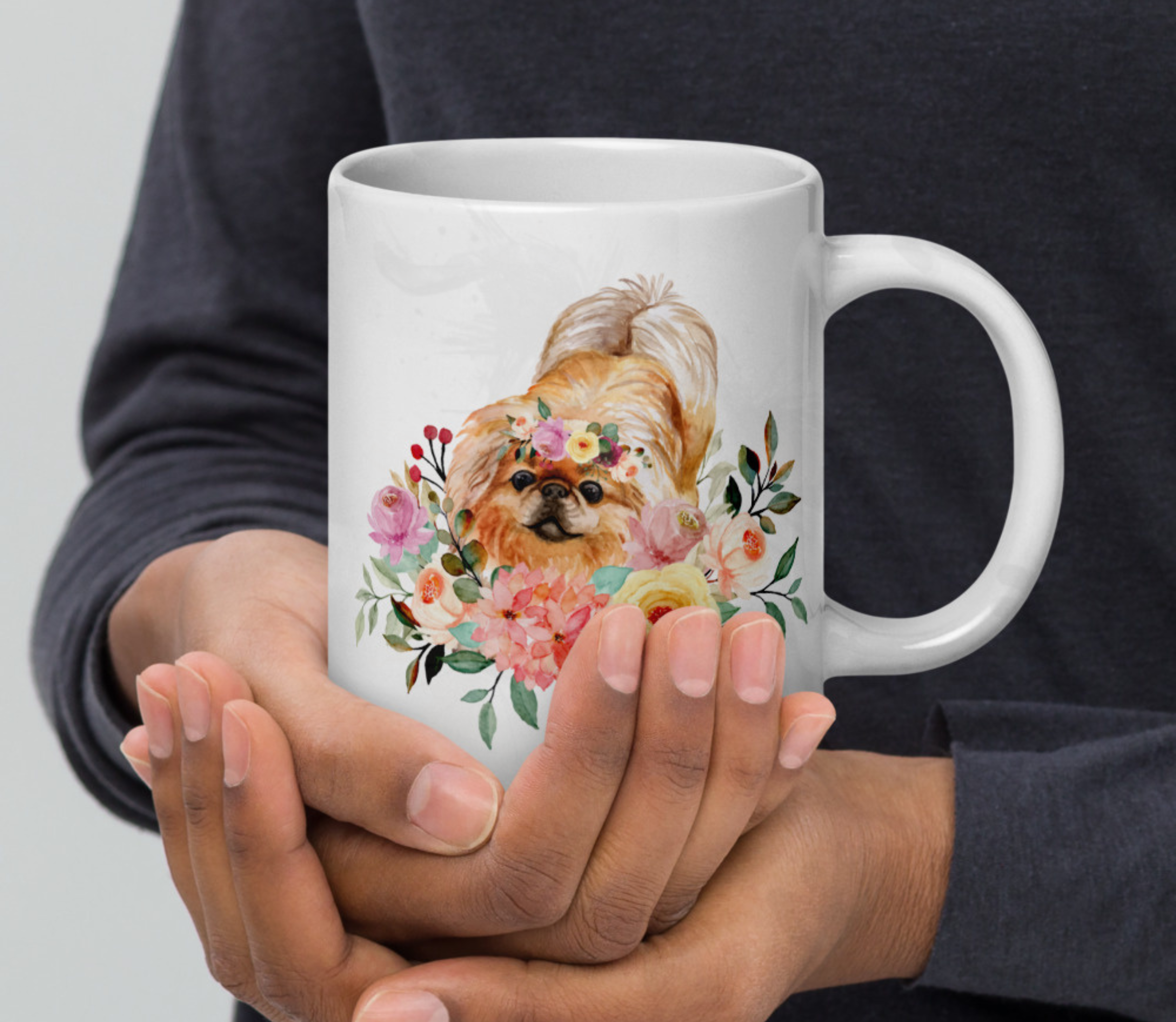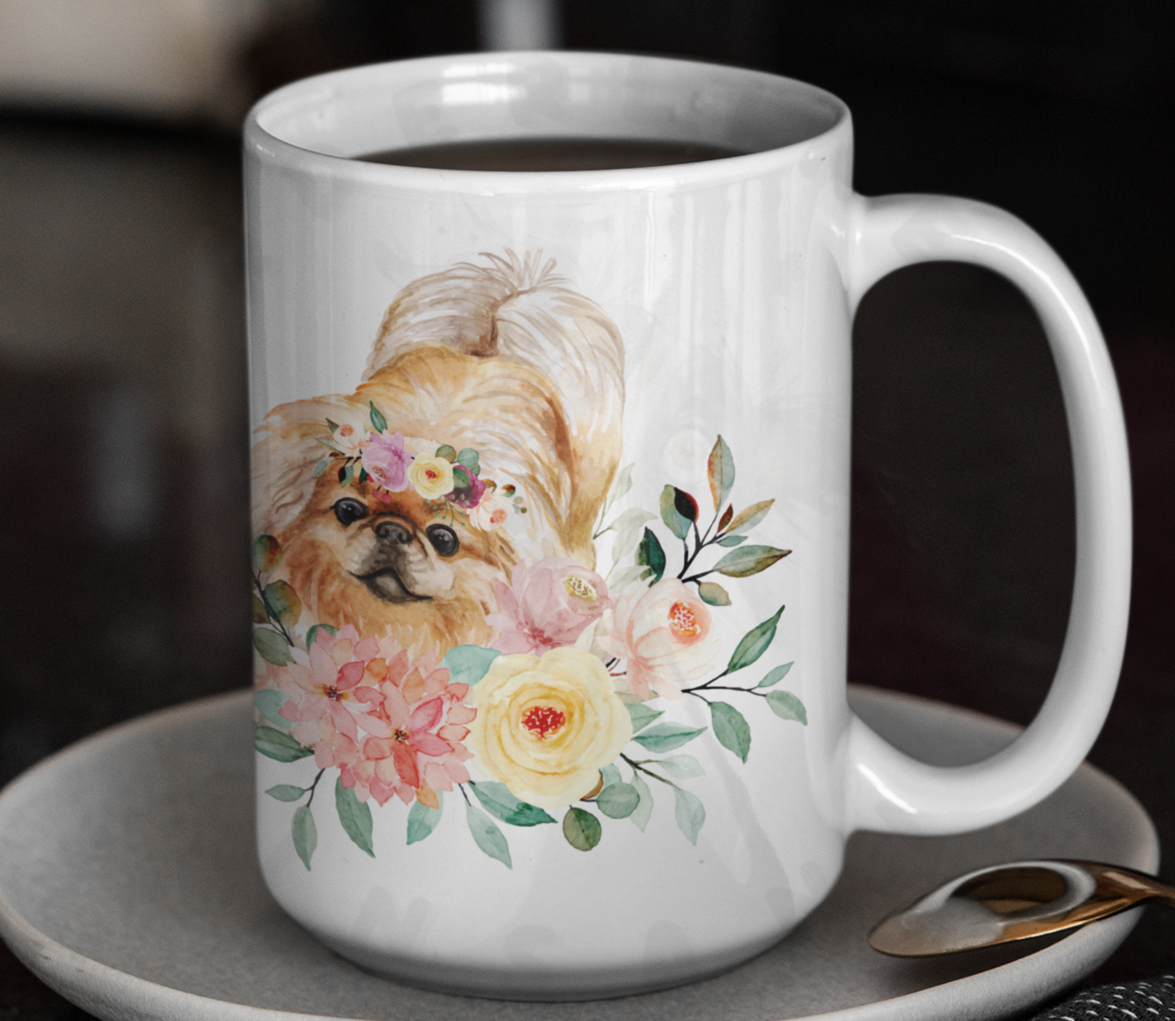 Brighten your morning coffee with our enchanting Pekingese floral mug!