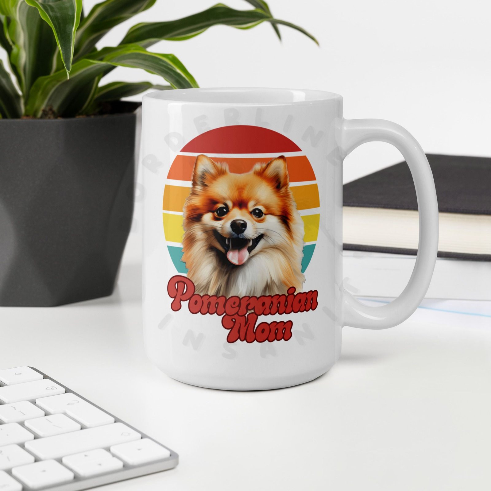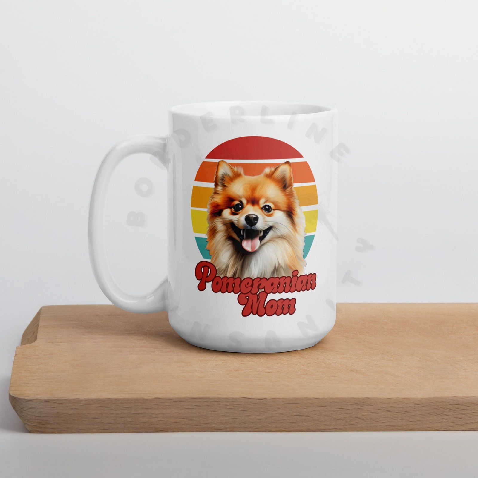 Because your morning coffee deserves a mug that truly understands you. This retro sunset Pomeranian Mom mug is designed for the dog mom who considers her Pomeranian a member of the family — because obviously they are.