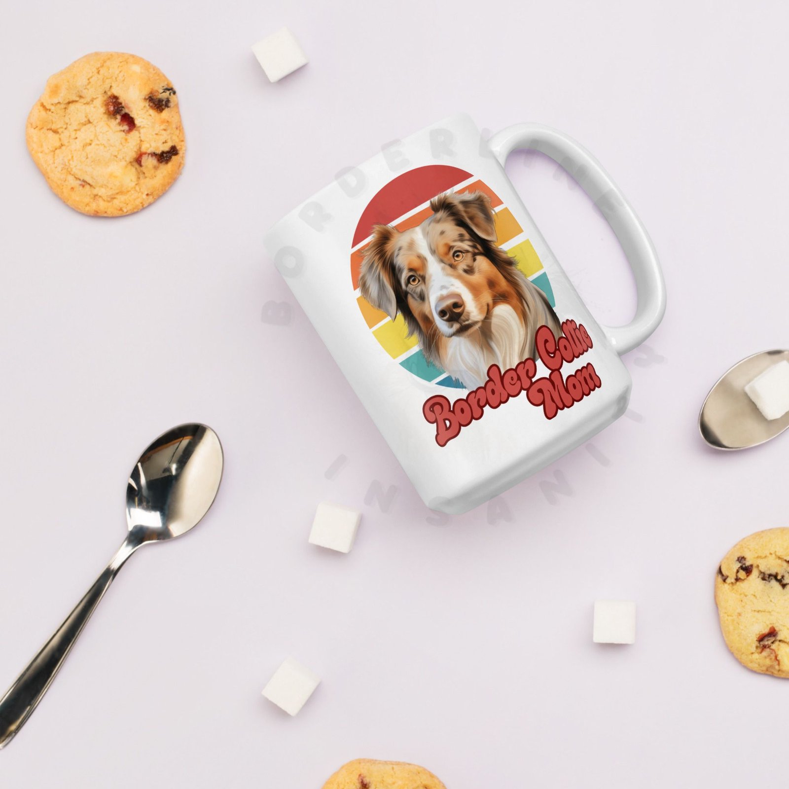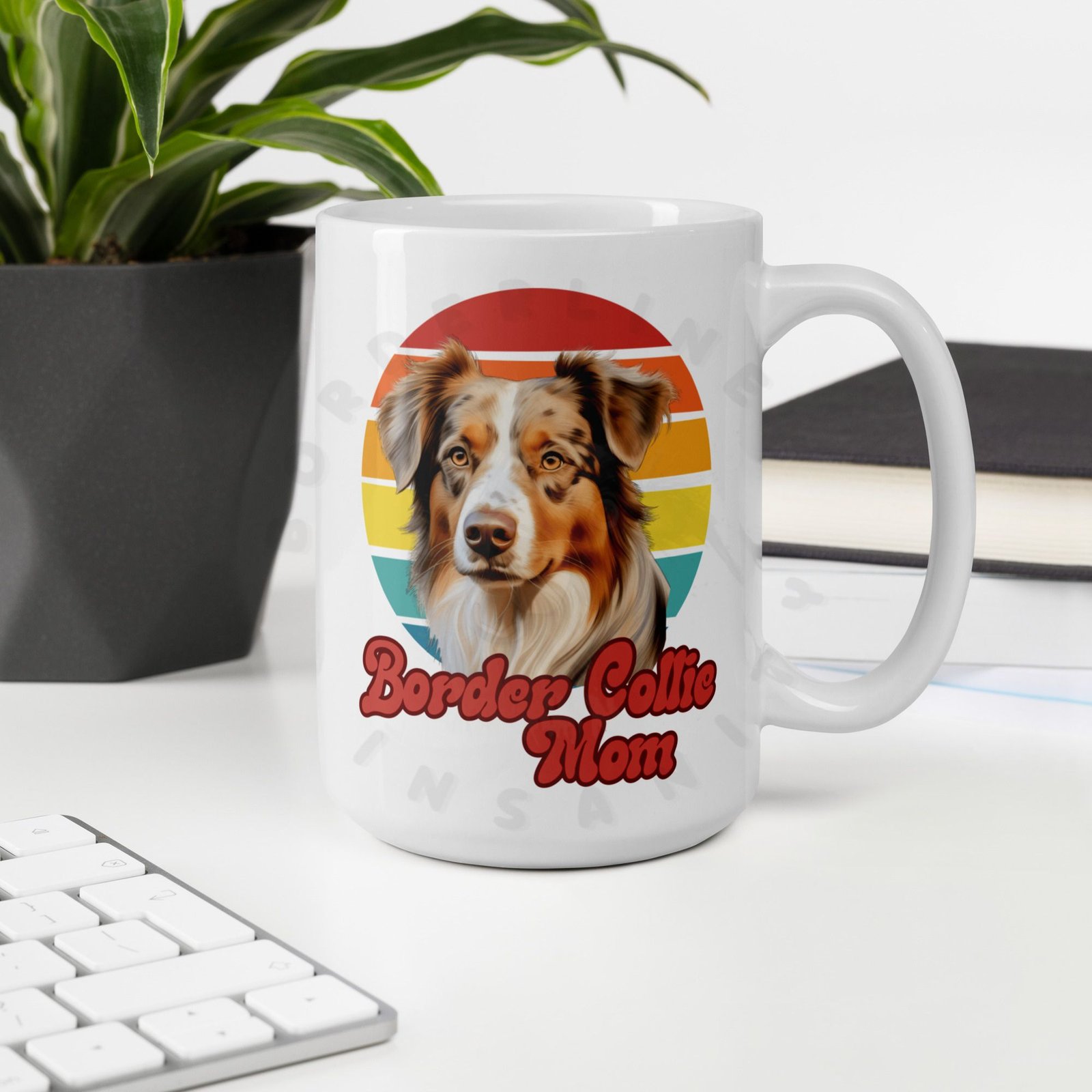 Because your morning coffee deserves a mug that truly understands you. This retro sunset Red Merle Border Collie Mom mug is designed for the dog mom who considers her Red Merle Border Collie a member of the family — because obviously they are.