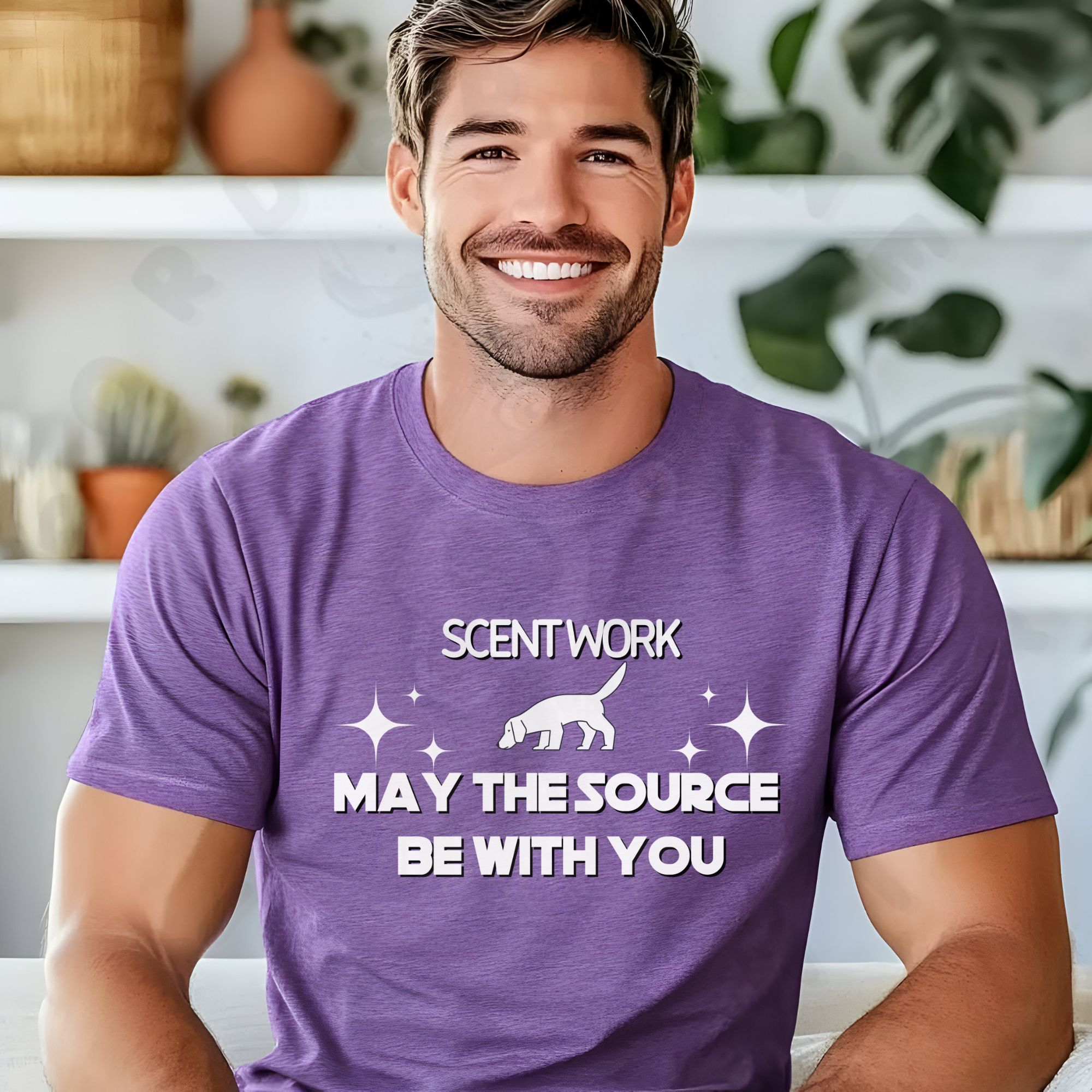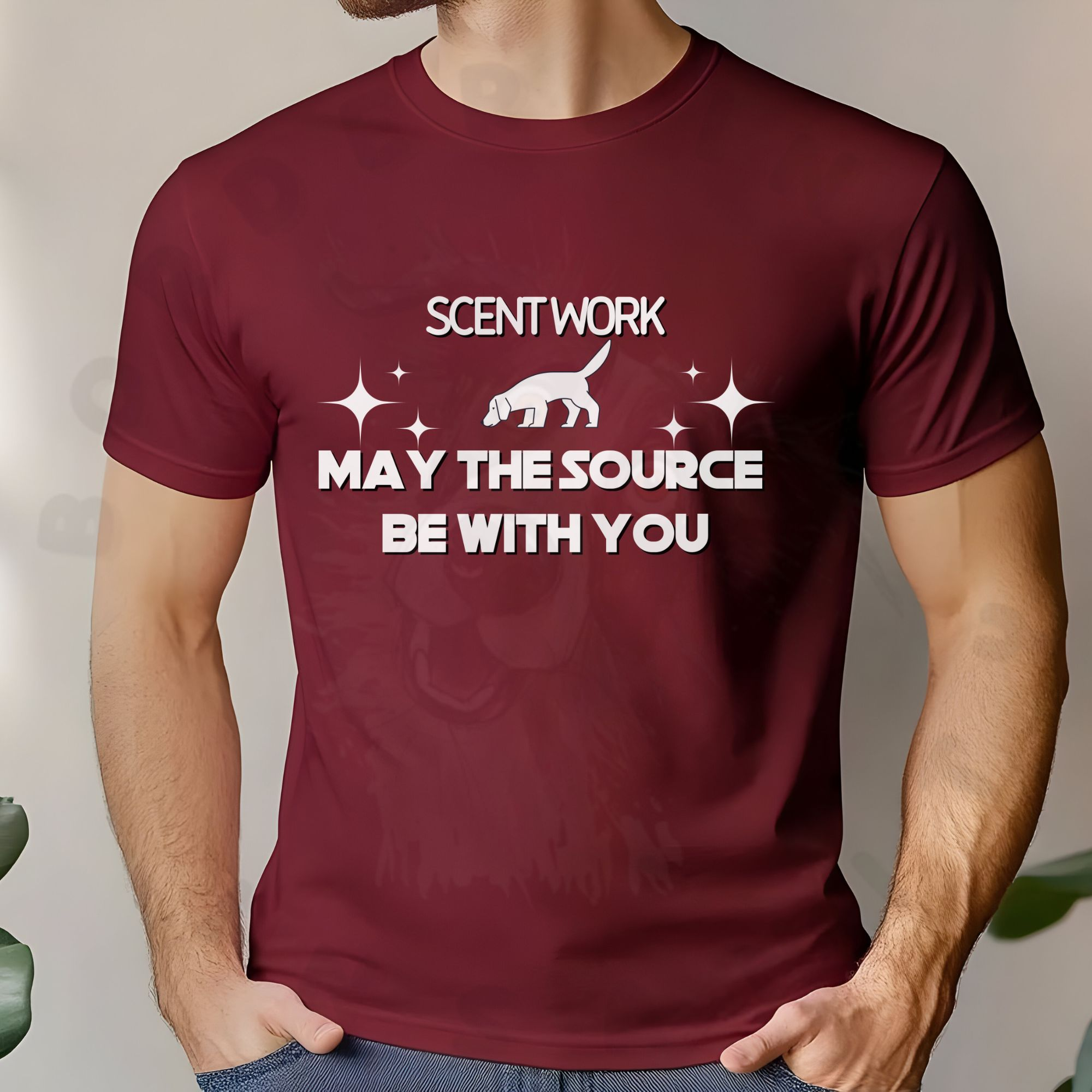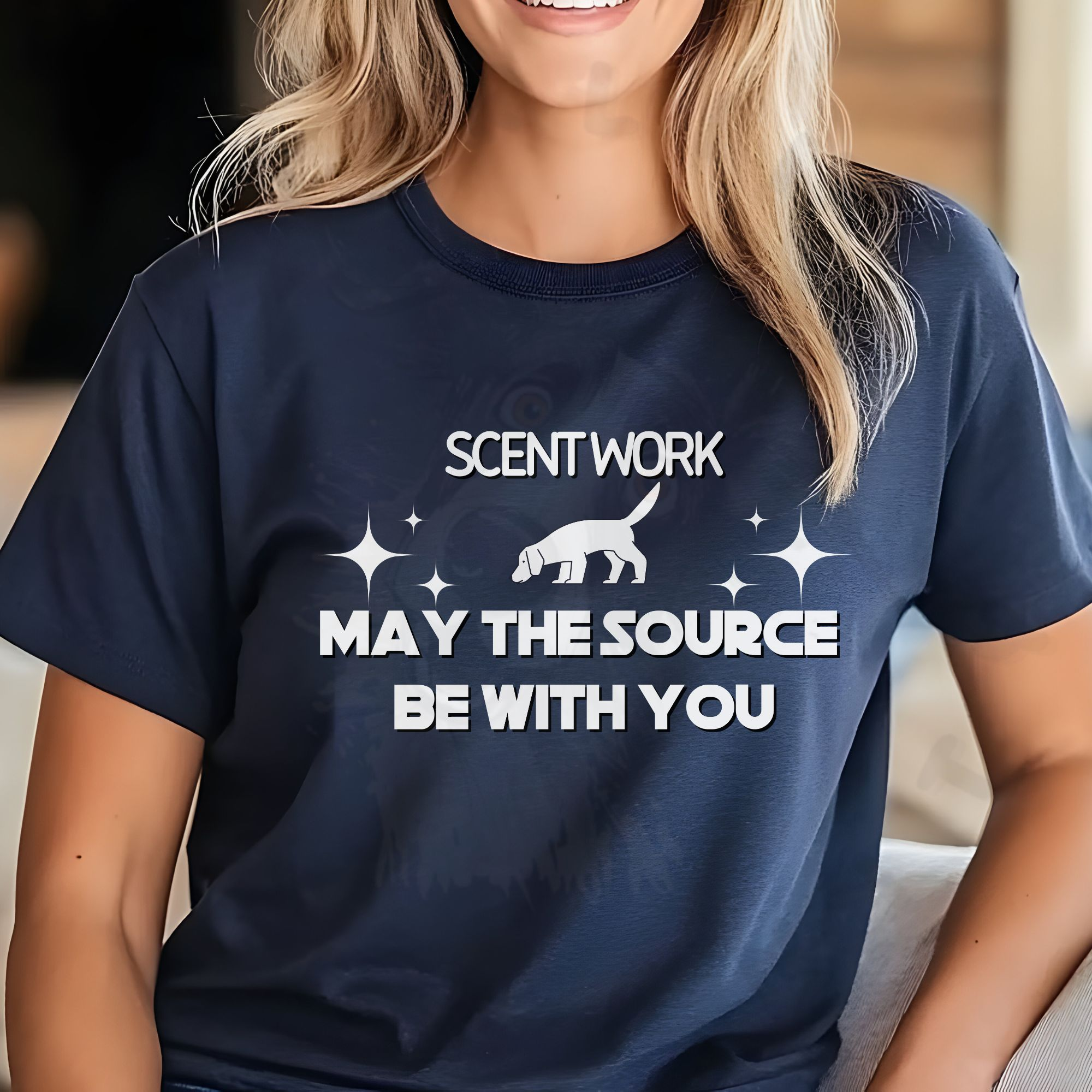 Unleash your inner Jedi of dog sports with this “Scent Work May the Source Be With You” T-shirt! Designed for scent detection enthusiasts, this shirt features bold lettering inspired by a classic space franchise and a silhouette of a sniffing dog at work. Whether you’re training, trialing, or cheering on your canine partner, this fun and geeky tee is the perfect way to show your love for scent work. Soft, durable, and comfortable enough for all-day wear, it’s a must-have for dog handlers, trainers, and fans of sci-fi alike.