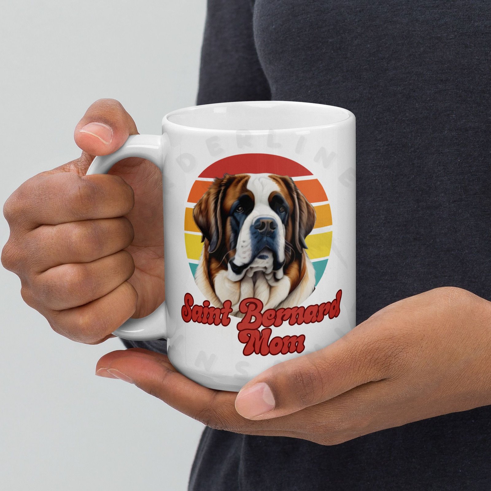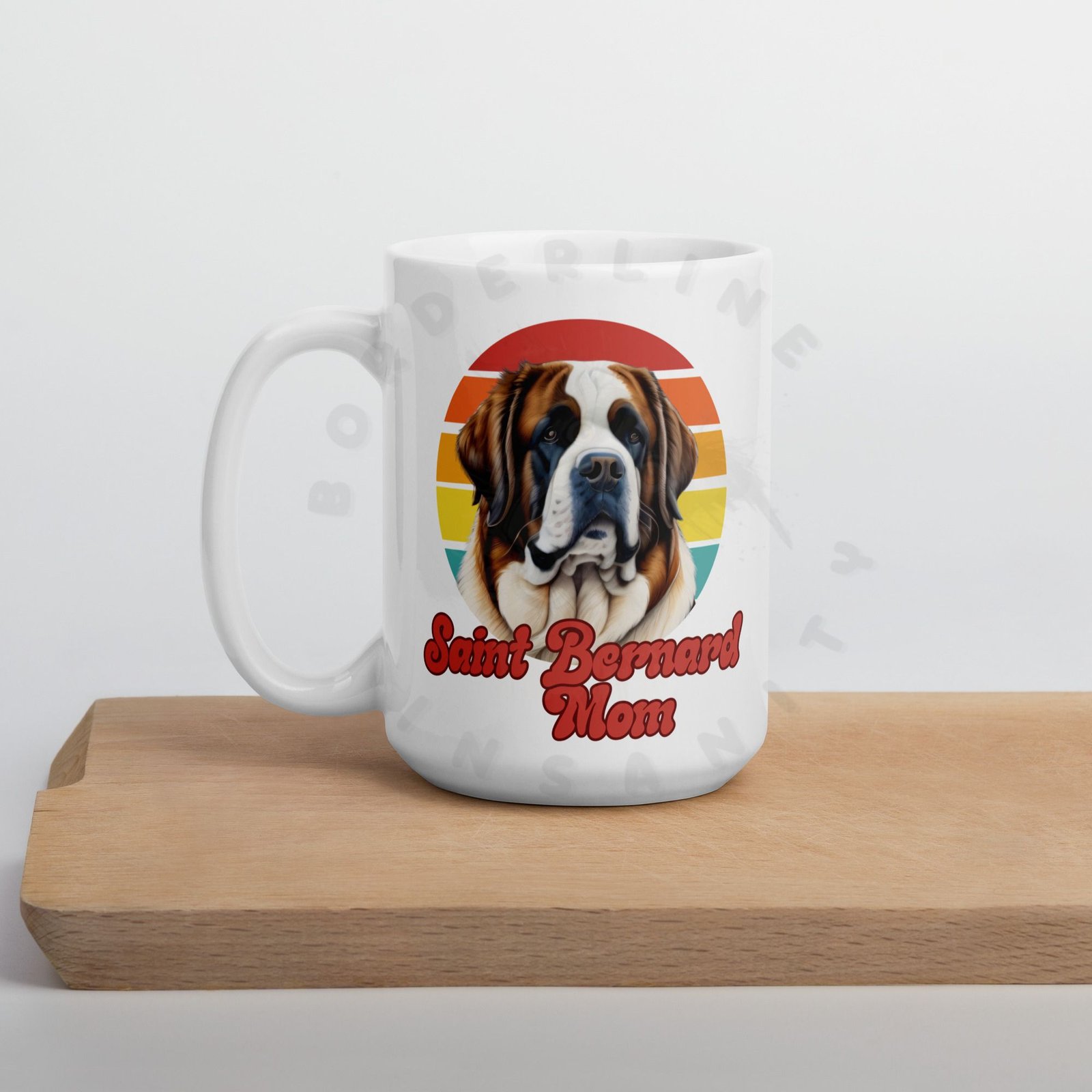St. Bernard Mom Mug | Retro Sunset Dog Mom Gift | 15oz Ceramic Coffee Mug