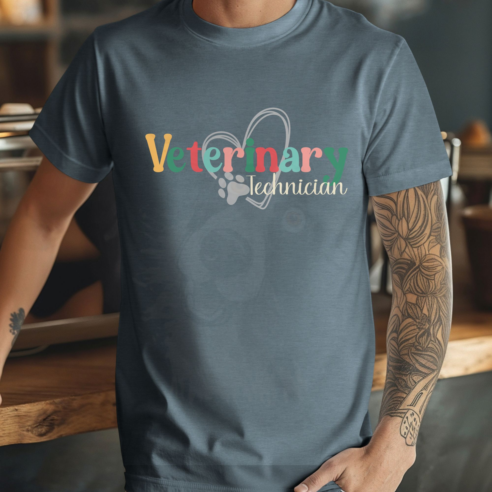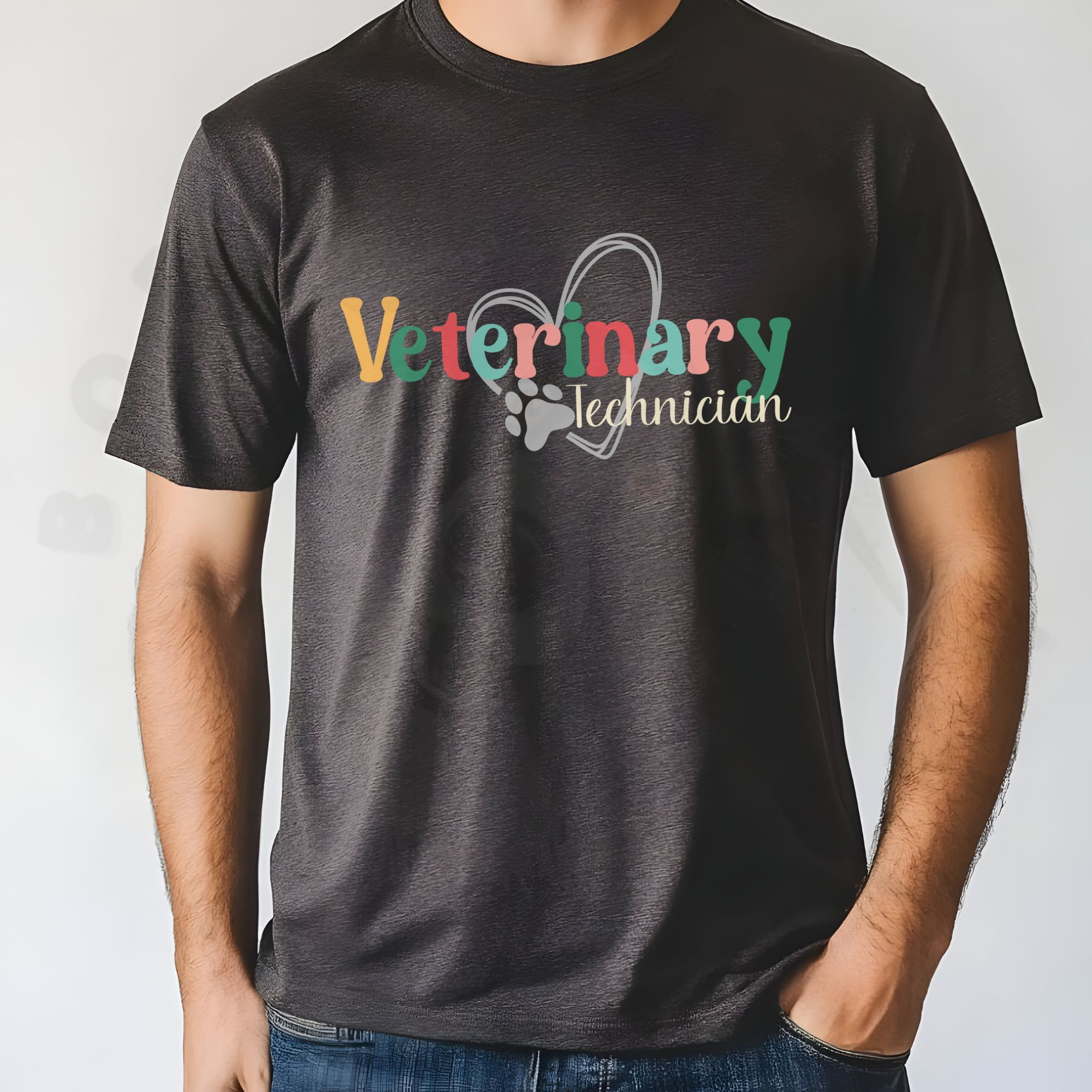 Show your pride and skill with this bright and heartfelt “Veterinary Technician” shirt! The heart and paw print design celebrates the compassion and dedication that vet techs bring to every patient. Perfect for wearing in the clinic or at home with your pets, this tee makes a great appreciation gift for veterinary technicians, vet nurses, and animal care students.