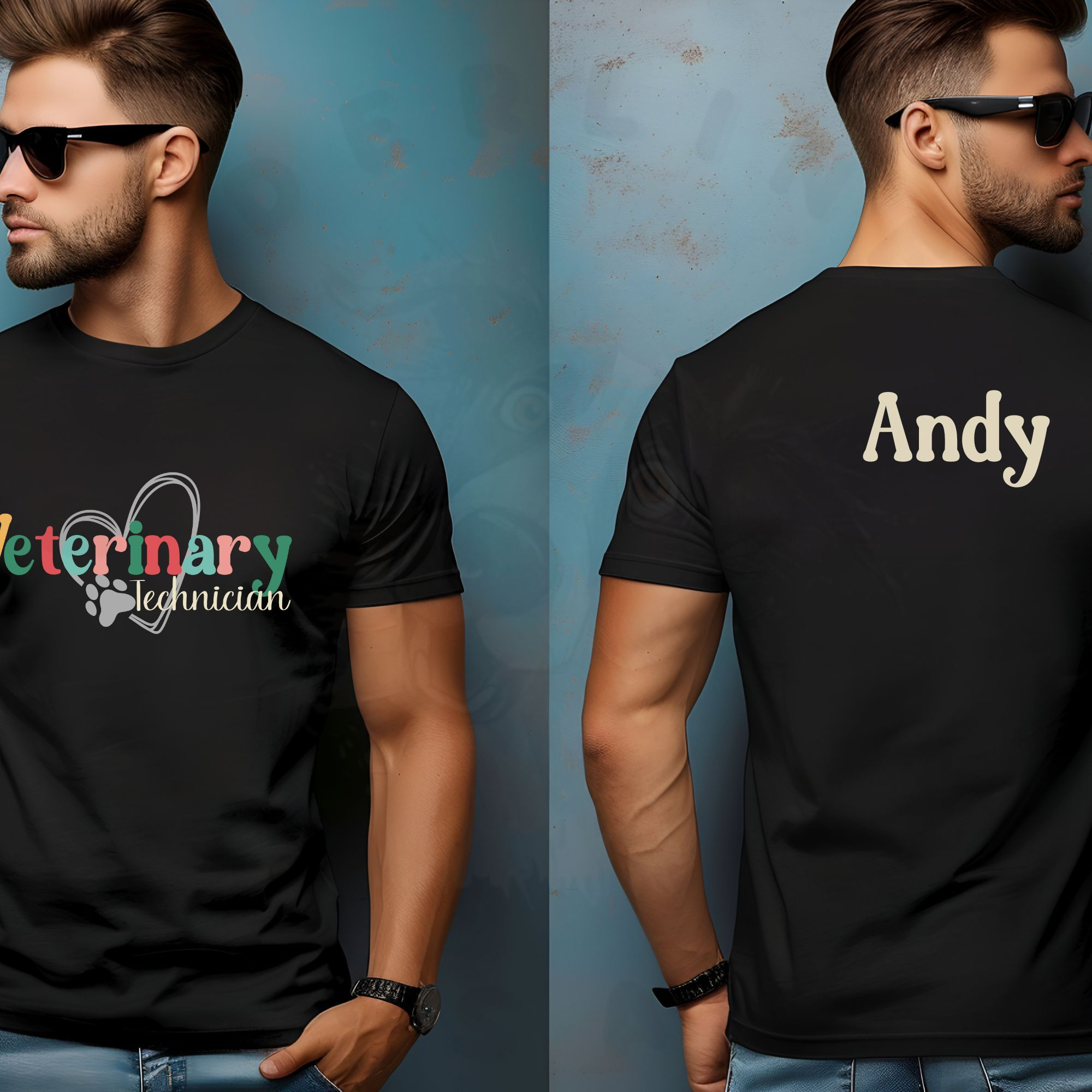 Make it extra special by adding a name to the back of this shirt – perfect for you or as a thoughtful gift for your vet team members!