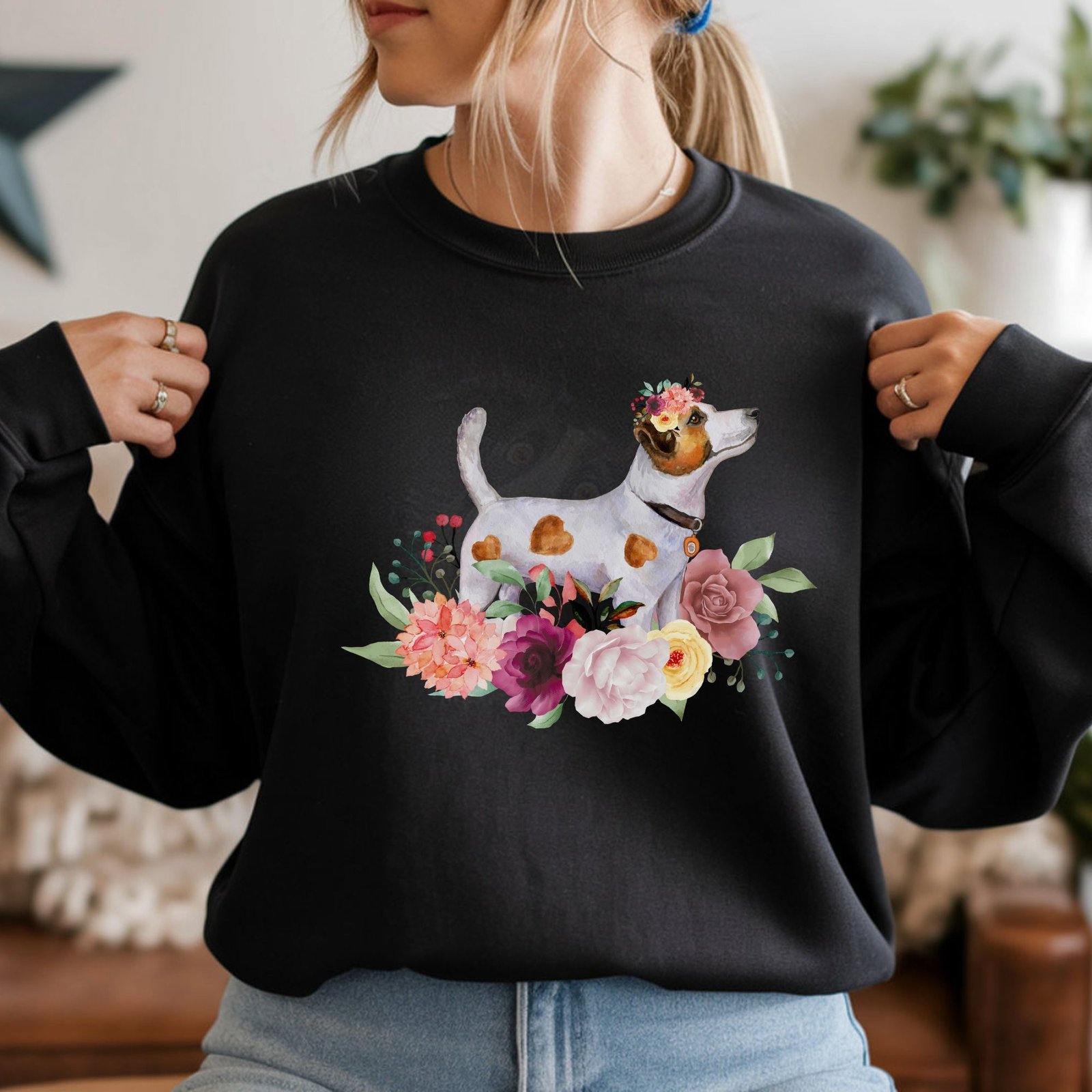 Watercolor Jack Russell Crewneck – Floral Terrier Gift